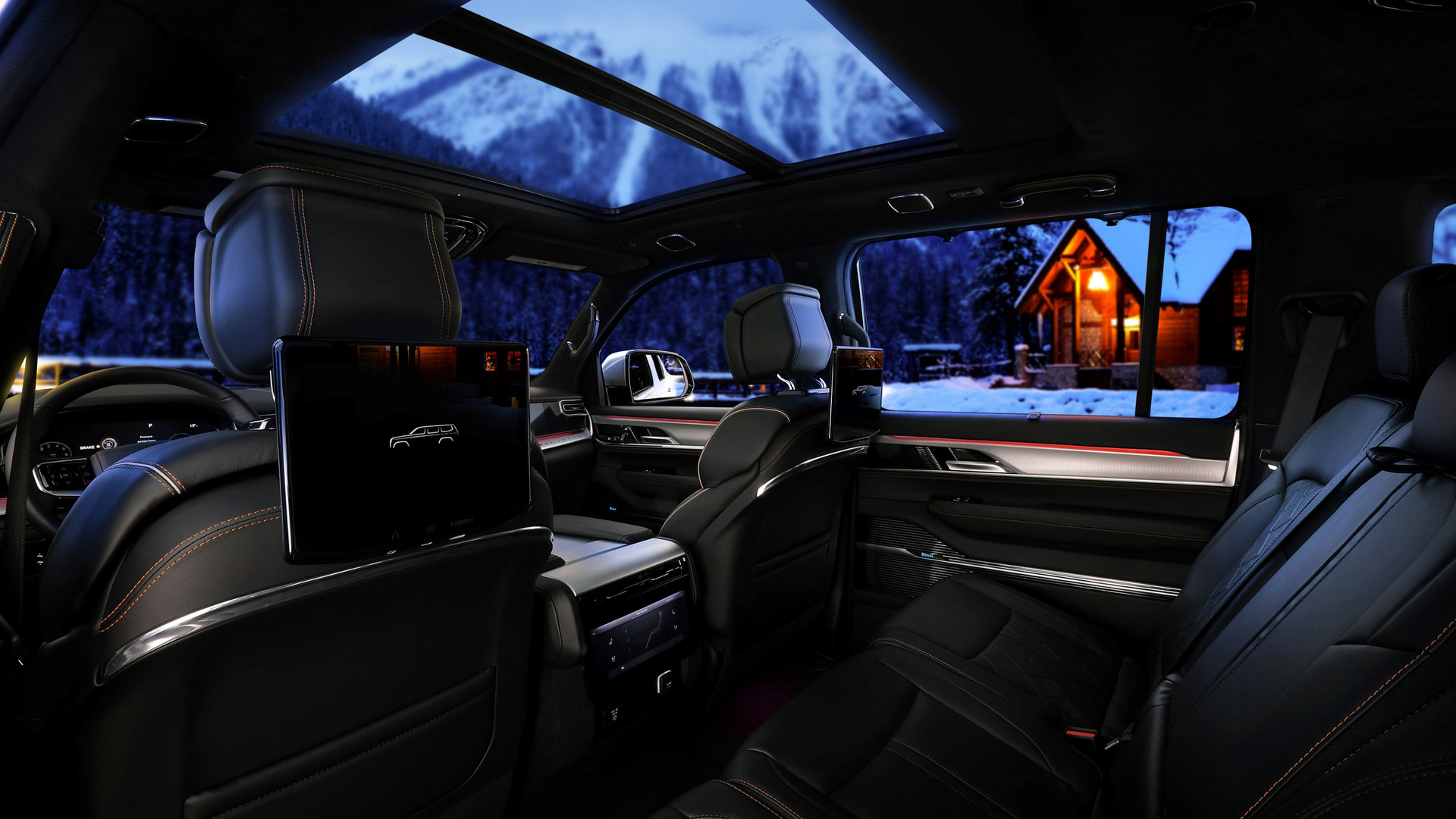 À bord, chaque finition présente un caractère propre. Les Grand Wagoneer et Limited d’entrée de gamme offrent un intérieur noir avec cuir Capri ou Nappa. L’Upland mise sur un style robuste, tandis que les Summit reçoivent des garnitures haut de gamme en bois véritable, cuir Palermo et système audio McIntosh à 23 haut-parleurs.