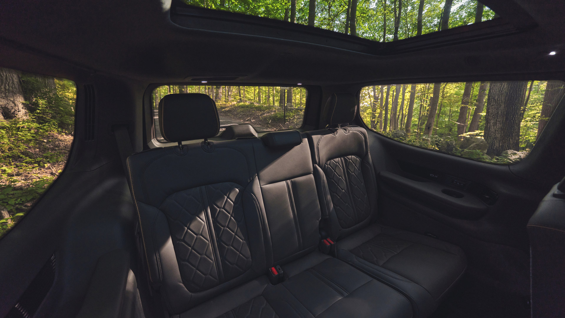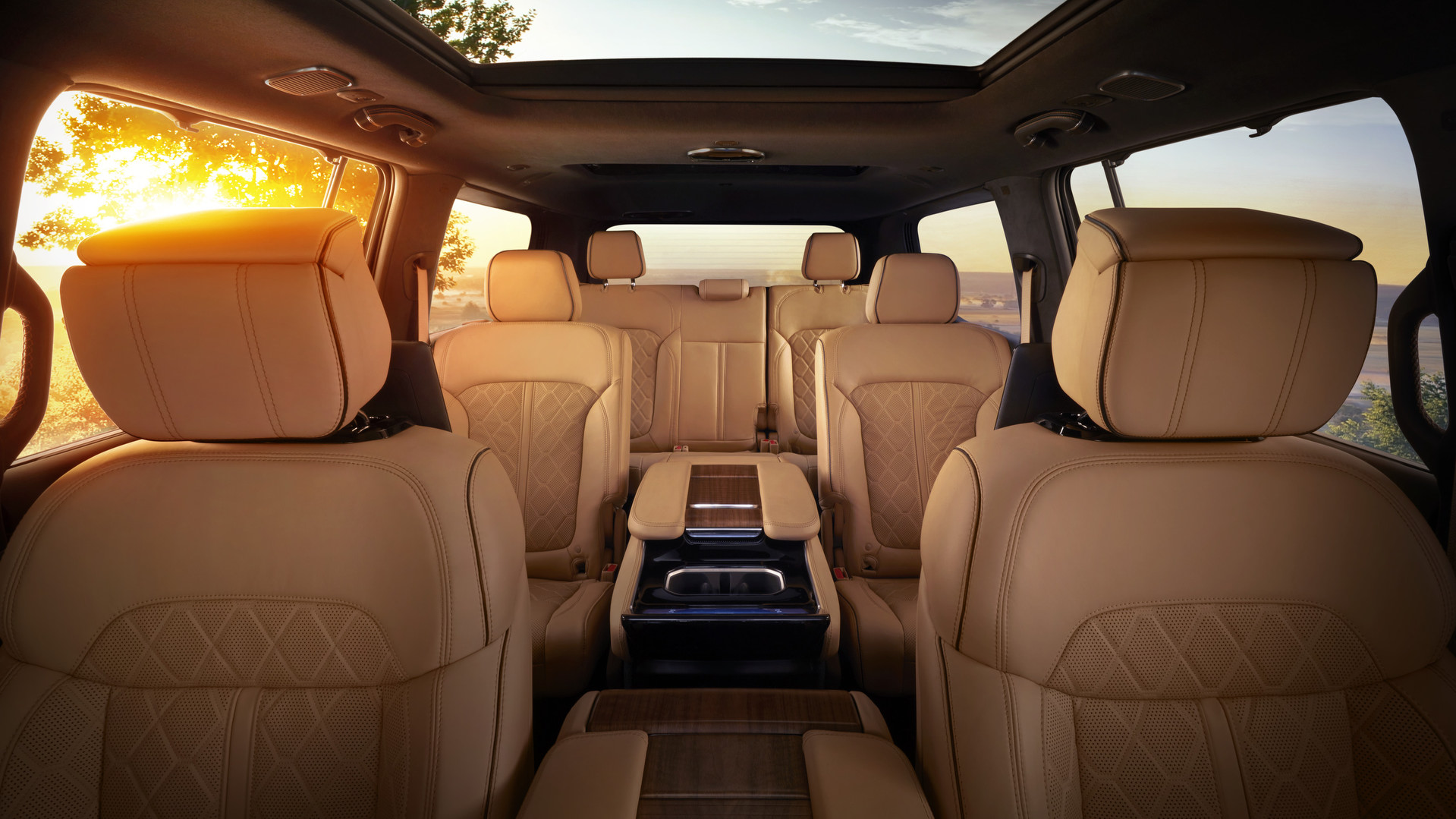 Intérieurs noirs avec garnitures brossées et surpiqûres de couleur fumée. Sellerie en cuir Capri ou Nappa à perforation Axis II. L’ensemble Upland (offert sur le modèle de base) ajoute une allure plus aventurière, tandis que le Limited Reserve en option bonifie le confort avec un système McIntosh à 19 haut-parleurs, un toit panoramique, des marchepieds motorisés, un HUD et un ensemble extérieur noir.