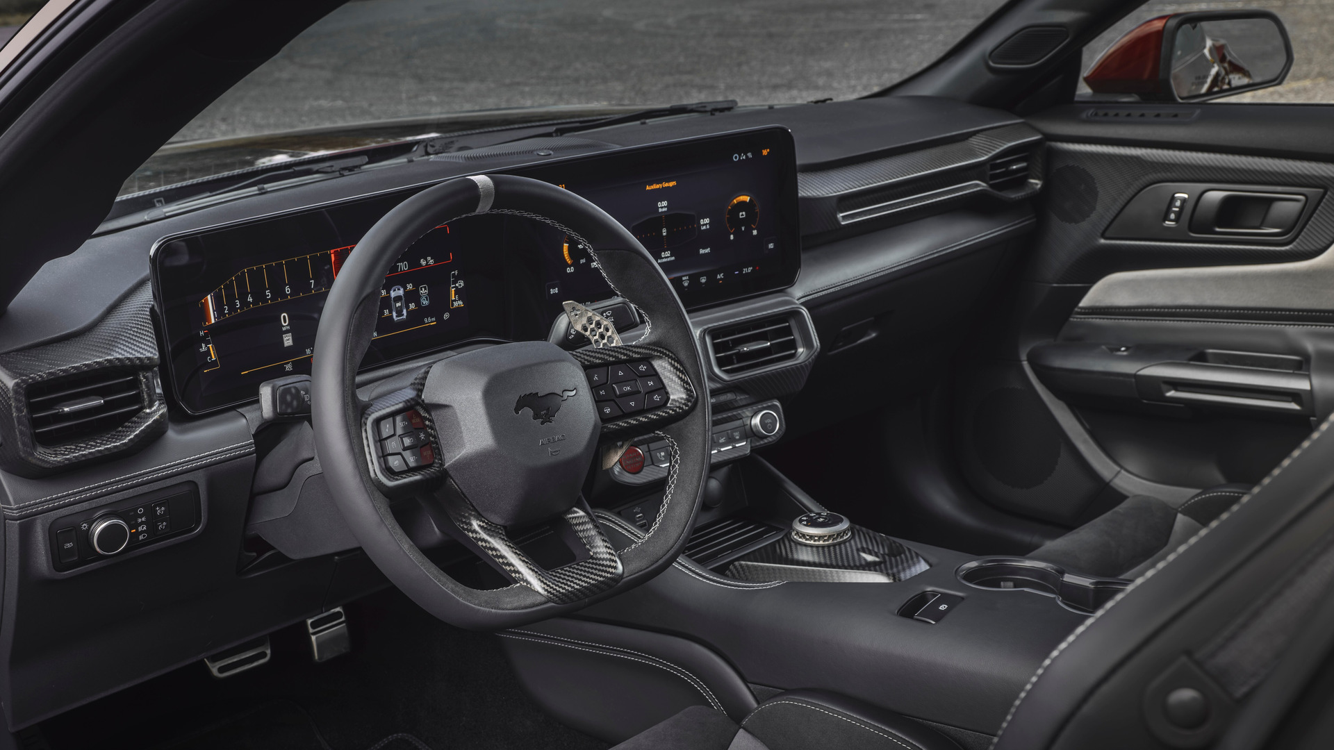 La Ford Mustang GTD 2026 affiche une consommation de carburant combinée de 19,2 L/100 km, avec des cotes de 23,5 L/100 km en ville et 13,9 L/100 km sur la route. Cette version est la Mustang la plus puissante produite par Ford grâce à son moteur V8 suralimenté de 5,2 litres développant 815 chevaux et 664 lb-pi de couple. La puissance est transmise par une boîte automatique à huit rapports, permettant une vitesse de pointe de 325 km/h. Le véhicule dispose d’un système d’huile à carter sec, de freins carbone-céramique et d’un système aérodynamique actif.