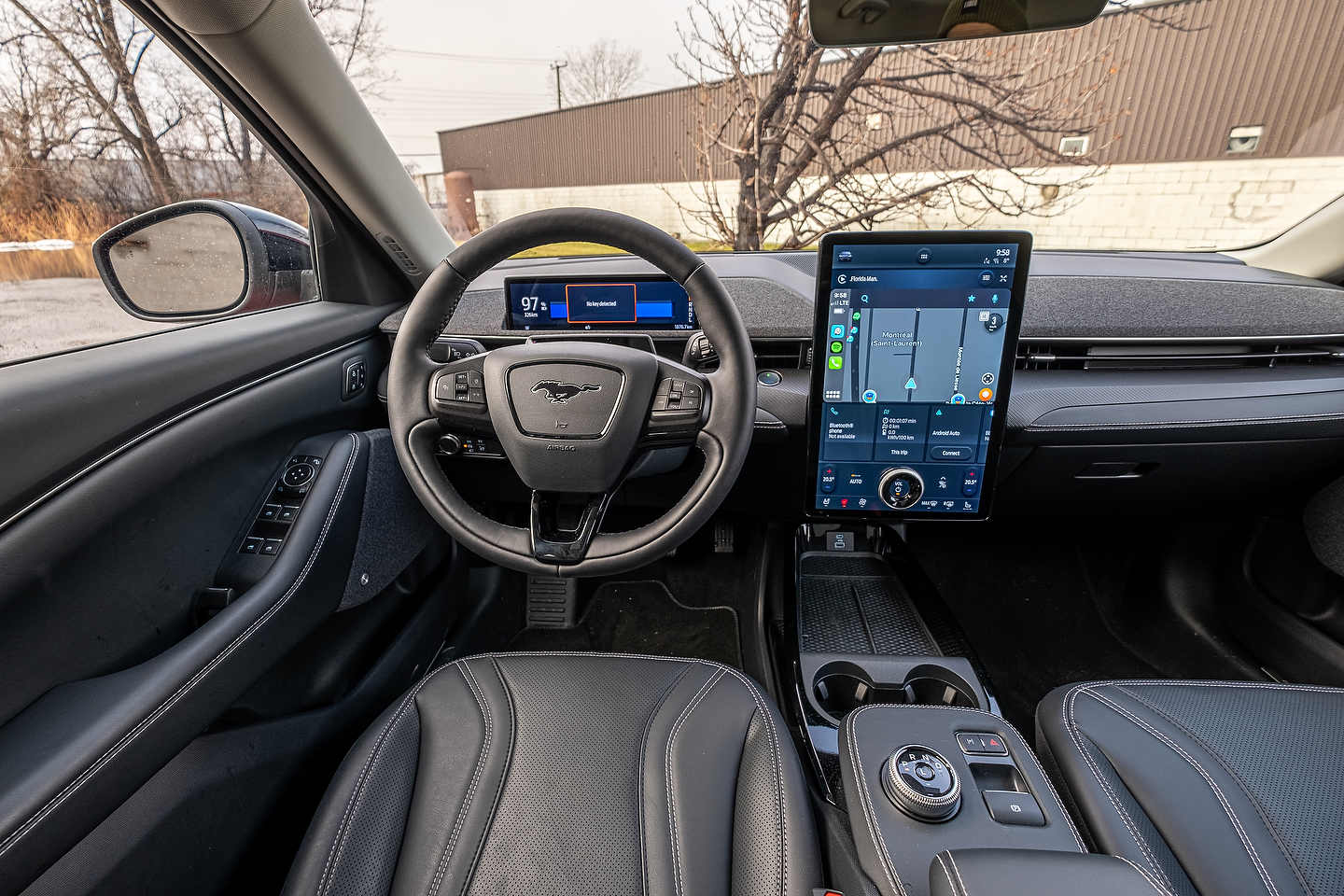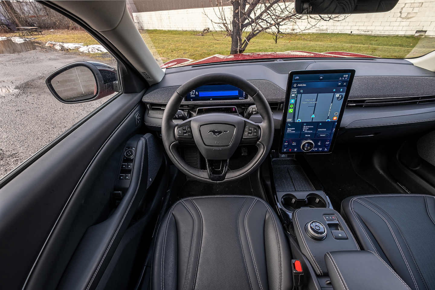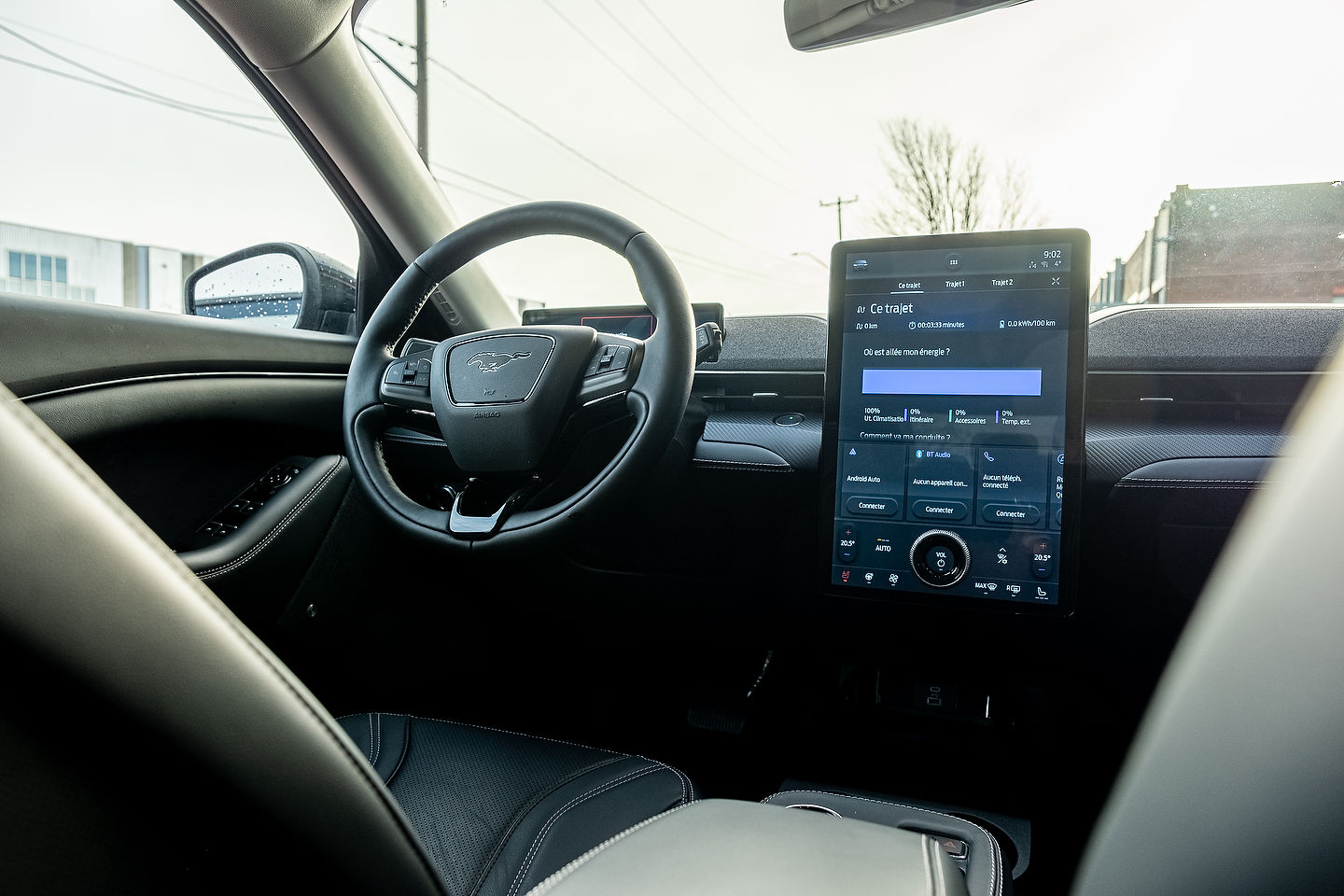 Au volant, la Mustang Mach-E est isolée et protégée des aléas de la circulation, ce qui confère au véhicule une expérience de conduite assez raffinée. Ceci est souhaitable, car, à l’exception du bruit du moteur à combustion interne, la Mach-E se compare à un grand SUV typique. Le châssis est réglé pour offrir un peu plus de dynamisme que de confort, mais c’est tout à fait normal puisqu’il s’agit quand même d’une « Mustang ».