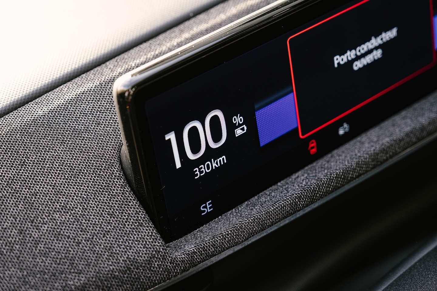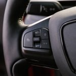 L’écran numérique de 10,2 pouces du tableau de bord aide le conducteur à rester concentré sur la route devant lui. L’écran tactile central de 15,5 pouces est remarquable et, grâce au système SYNC4 de série, son utilisation est extrêmement intuitive. Son positionnement vertical permet un accès facile aux commandes dans le sens de la largeur et j’aime bien le bouton de volume physique tout en bas de l’écran.