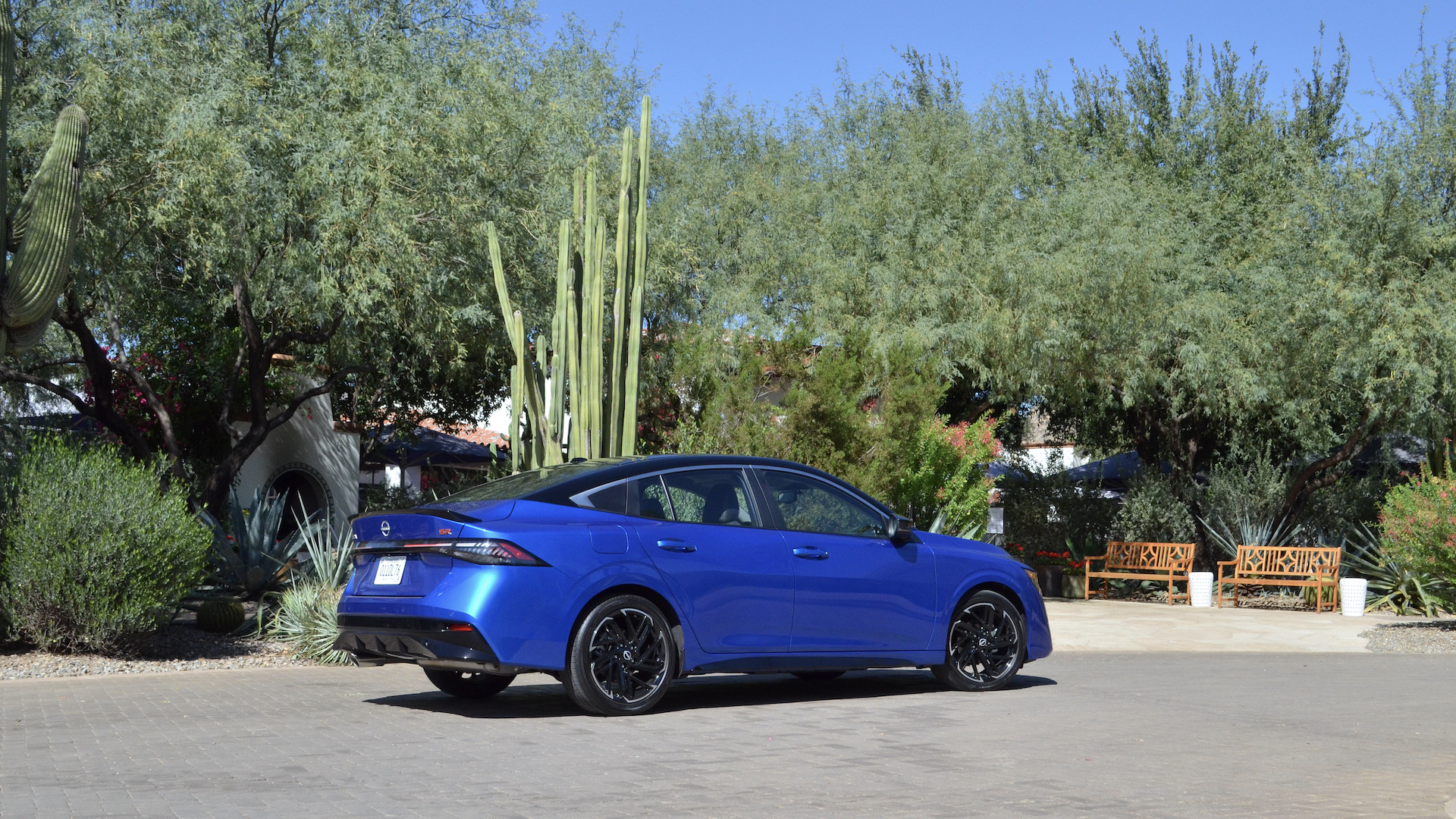 Au profil, Nissan reconduit l’option d’un toit noir sur la SR pour une touche de luxe supplémentaire. La taille des roues varie de 16 pouces avec enjoliveur pour le S à 16 pouces en aluminium pour la SV et finalement 18 pouces à deux tons pour la SR. À l’arrière, on arrive avec un seul feu aux DEL et sur la version SR, un becquet noir améliore l’aérodynamique et le look plus sportif de la voiture. La SR a également un parechoc avec une appliquée noir et un pot d’échappement à embout chromé.
