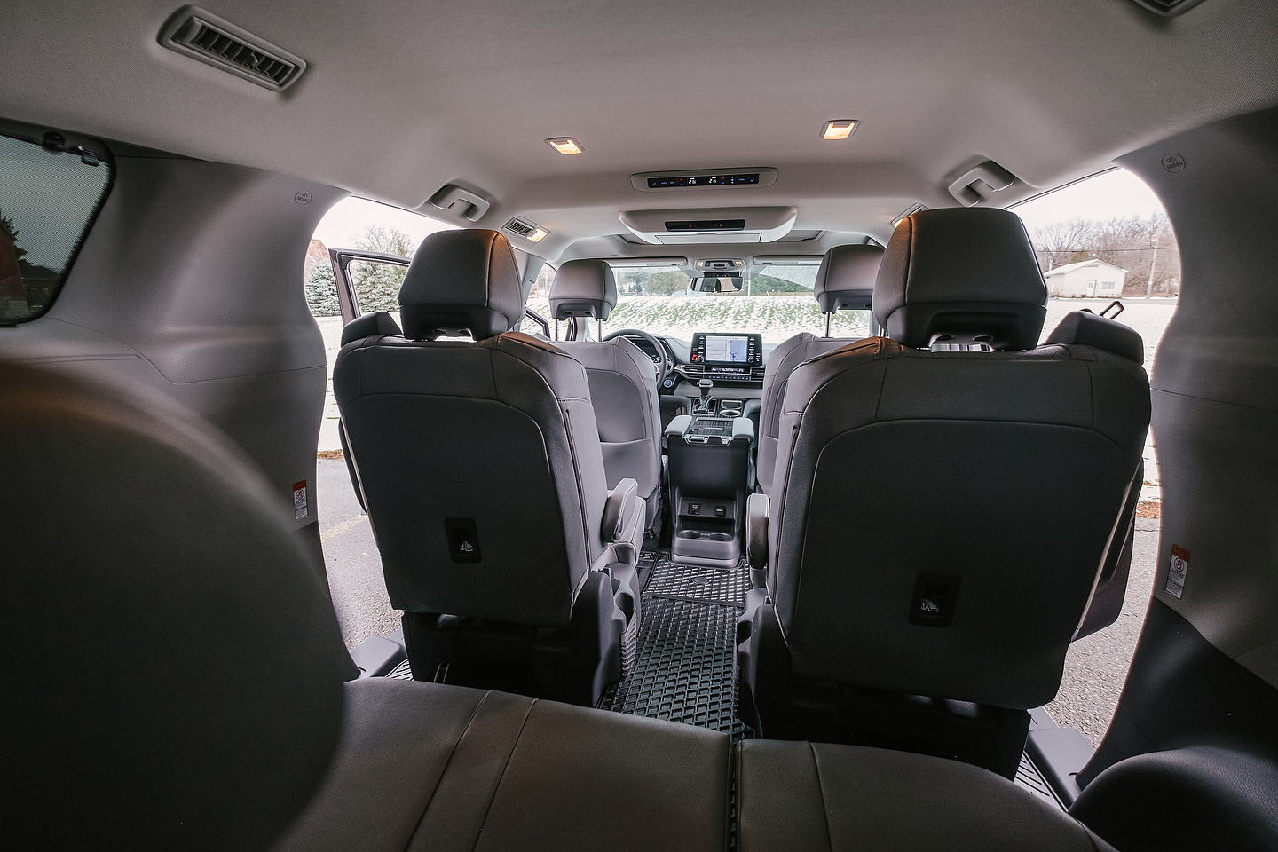 À l’avant, maman et papa ont accès à de nombreux endroits songés pour déposer ou brancher les téléphones, ranger les clés, les mouchoirs sales et les emballages de collation. La console centrale crée un « pont » vers le grand bac central, ce qui permet d’y placer des objets plus volumineux qui ne peuvent pas tenir dans les porte-gobelets. La Sienna est une voiture familiale dans laquelle tout le monde peut s’installer confortablement.