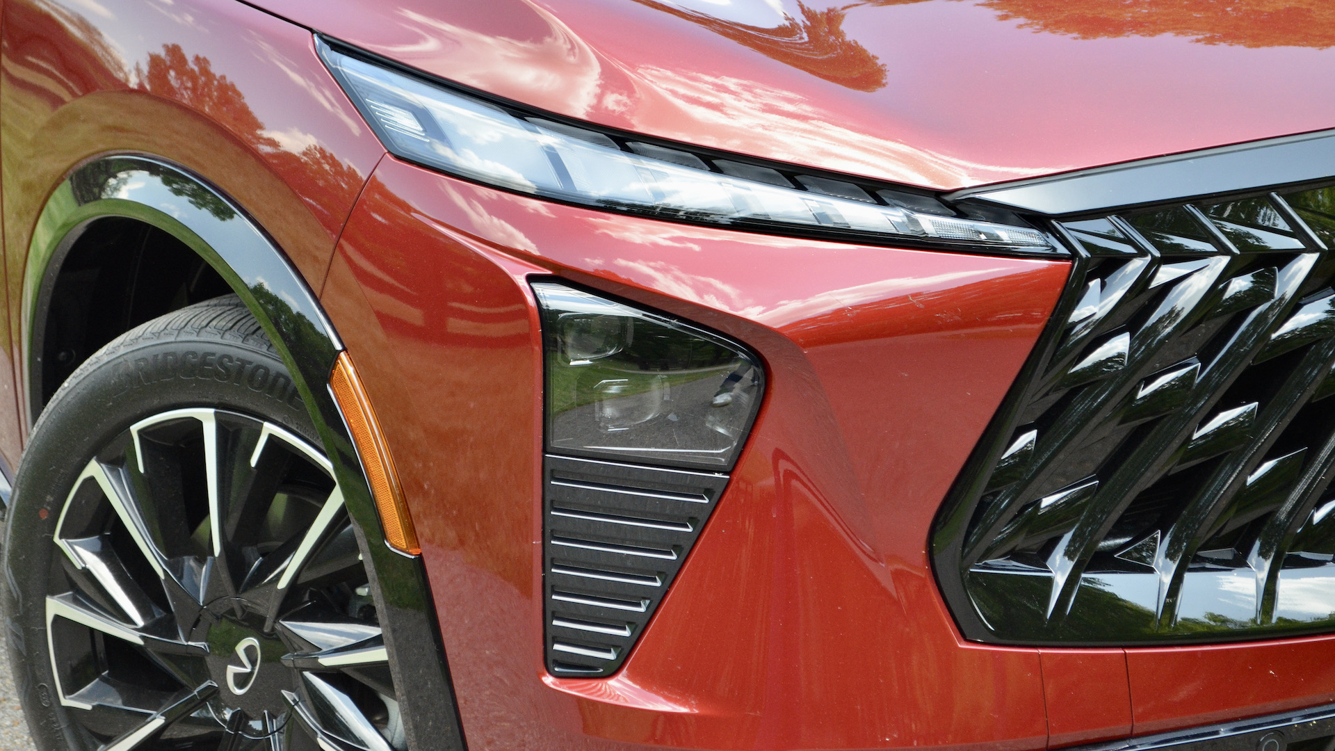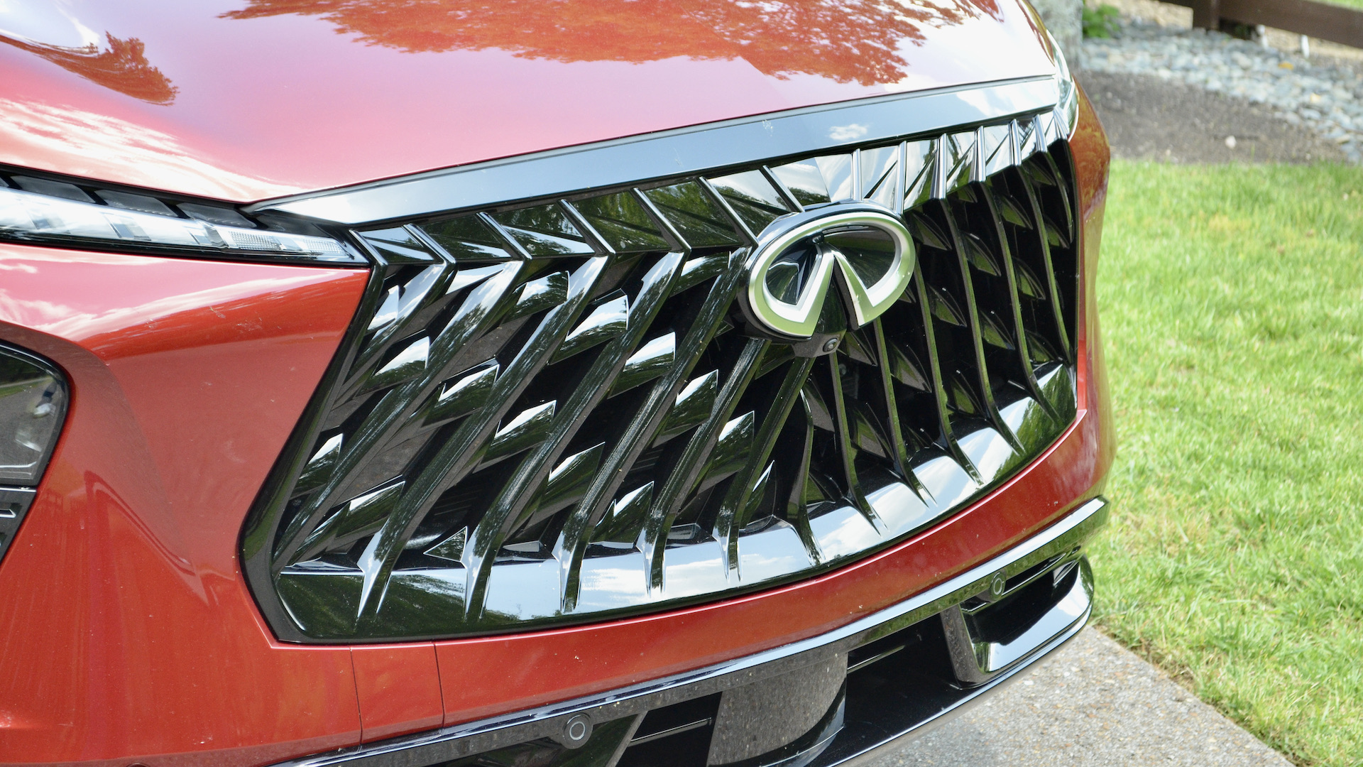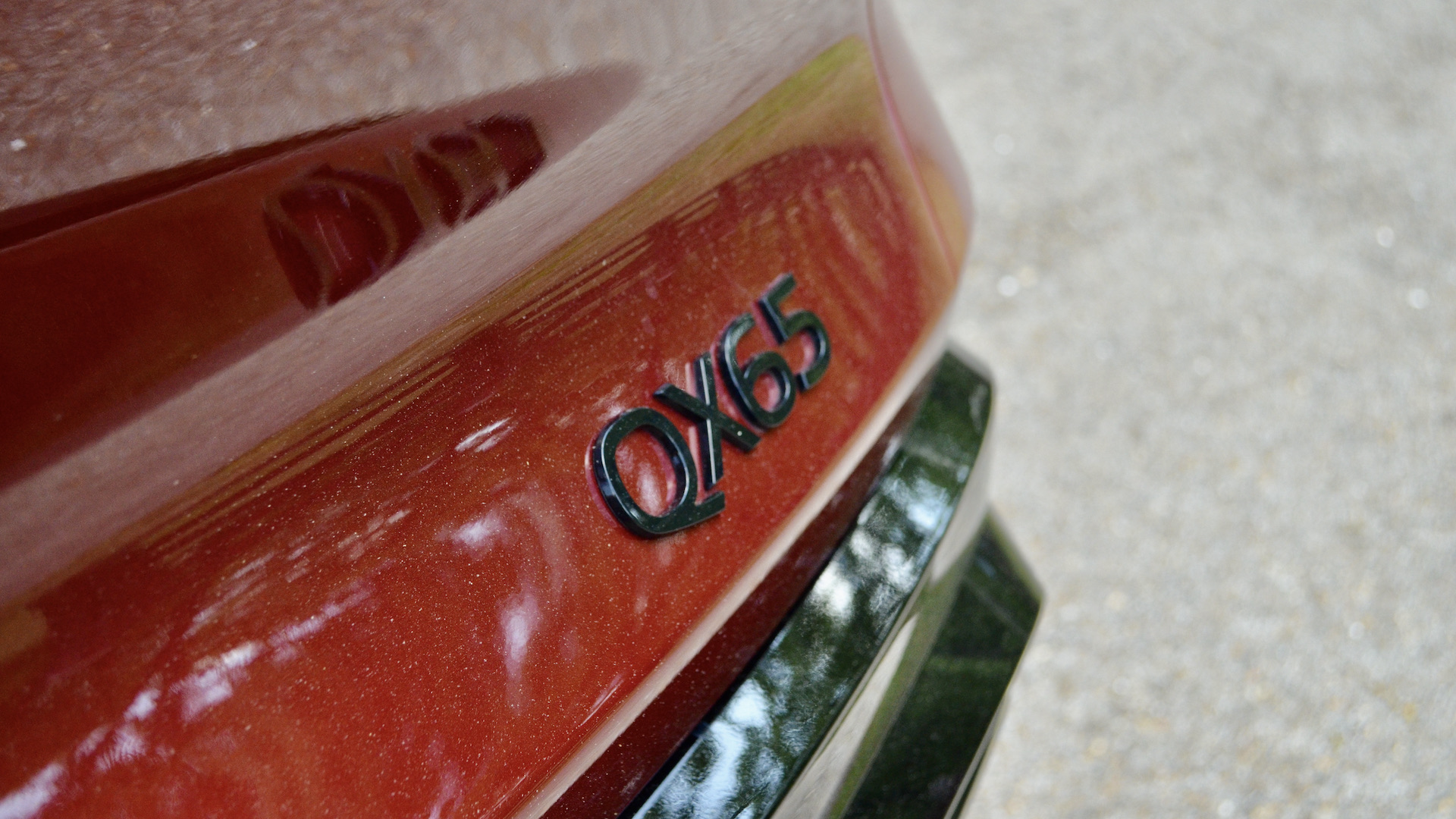 Sous la direction du chef du design Alfonso Albaïsa, le langage stylistique « Artistry in Motion » poursuit son évolution chez Infiniti. Les liens de parenté avec le QX60 sautent aux yeux, même si, dans les faits, les deux véhicules partagent peu d’éléments de carrosserie. L’influence est surtout visible à l’avant avec la forme générale. Toutefois, le QX65 se distingue rapidement, notamment avec des blocs optiques séparés en deux niveaux, une signature devenue omniprésente dans l’industrie. Les feux de jour et l’identité lumineuse reprennent ainsi le motif de « touches de piano » en DEL, déjà aperçu sur le QX80. Sur le concept, cette signature s’étendait jusque dans la calandre, un détail qui disparaît malheureusement sur le modèle de série.