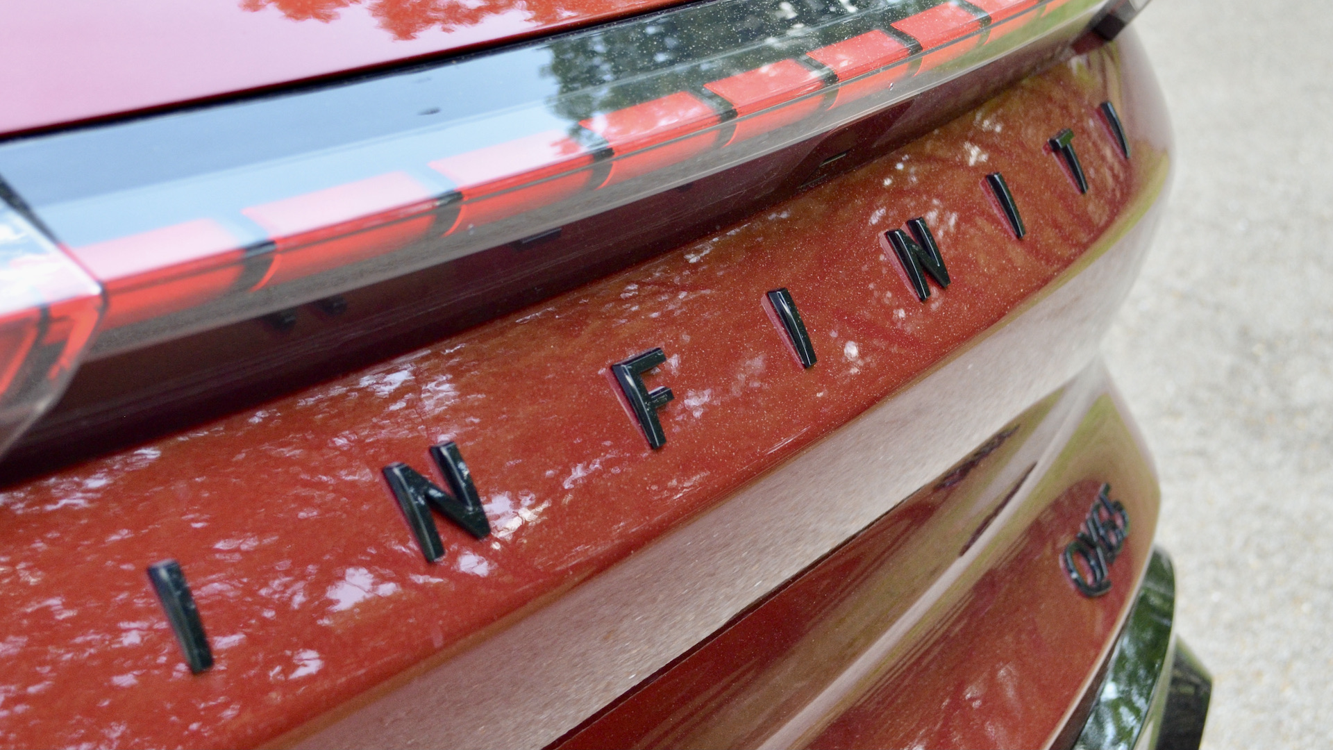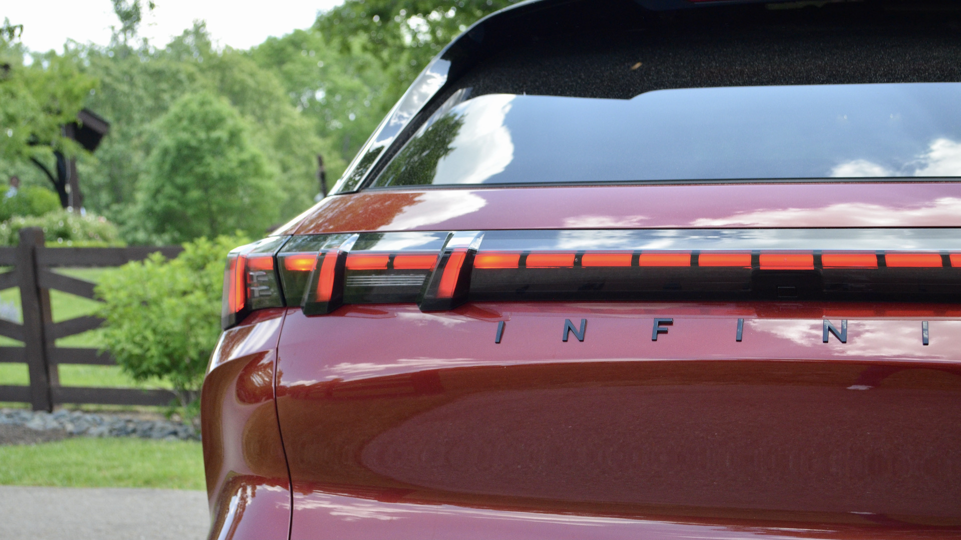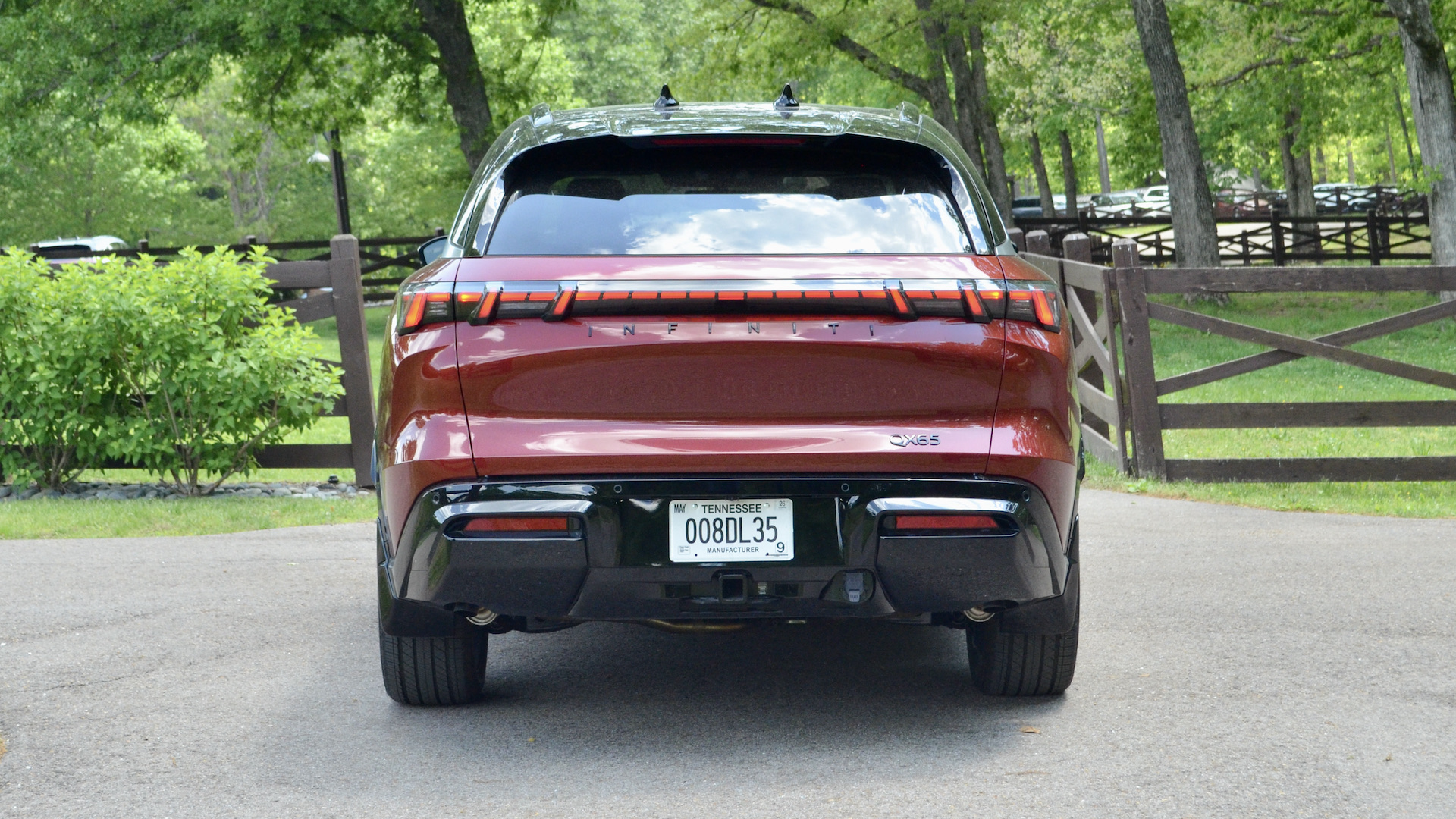 À l’arrière, le résultat est convaincant. Un bandeau lumineux unique, inspiré du QX80, traverse le hayon et reprend encore une fois le thème des notes de piano sous forme de segments DEL. Le hayon très incliné vient appuyer le caractère coupé du véhicule. Dans l’ensemble, le QX65 réussit à livrer une proposition stylistique franchement séduisante et distinctive dans l’industrie.