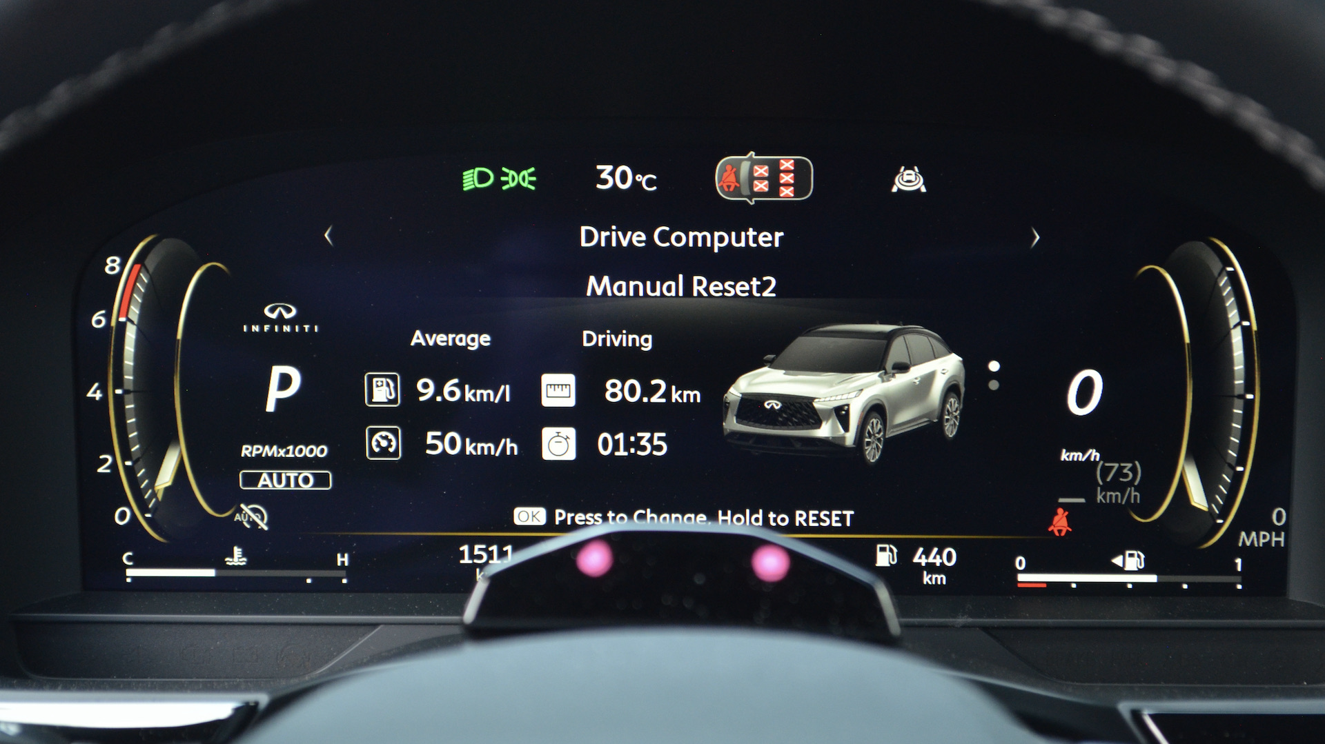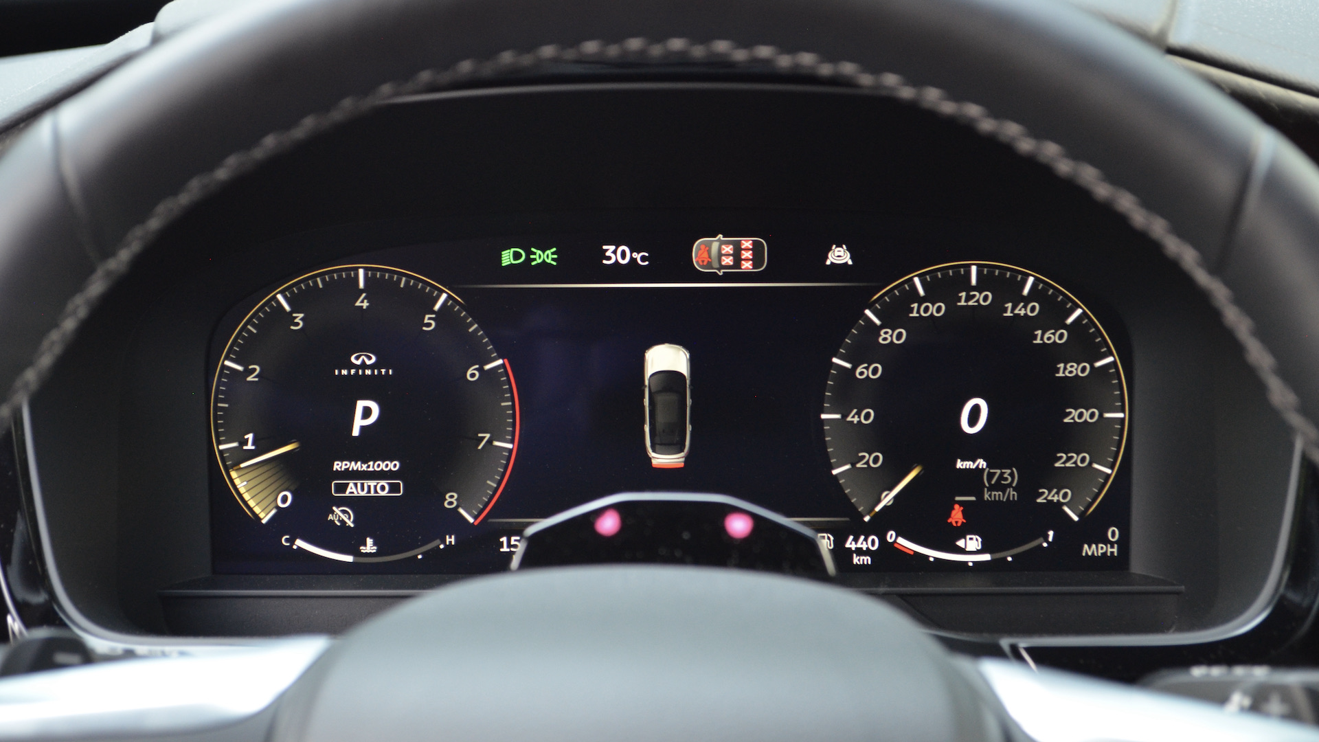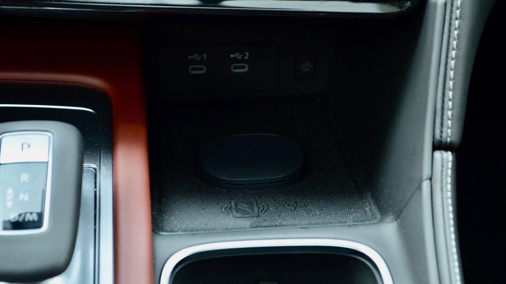 Dès la version Sport, un affichage tête-haute de 10,3 pouces s’invite, alors que la planche de bord est dominée par les deux écrans de 12,3 pouces désormais bien connus dans l’univers Nissan-Infiniti. Côté connectivité, l’intégration de Google Assistant simplifie l’utilisation au quotidien, et Apple CarPlay comme Android Auto sont inclus de série. Dans une optique d’efficacité, la recharge par induction à la console est climatisée dès 35 degrés et l’on intègre un aimant pour éviter des mouvements impromptus.