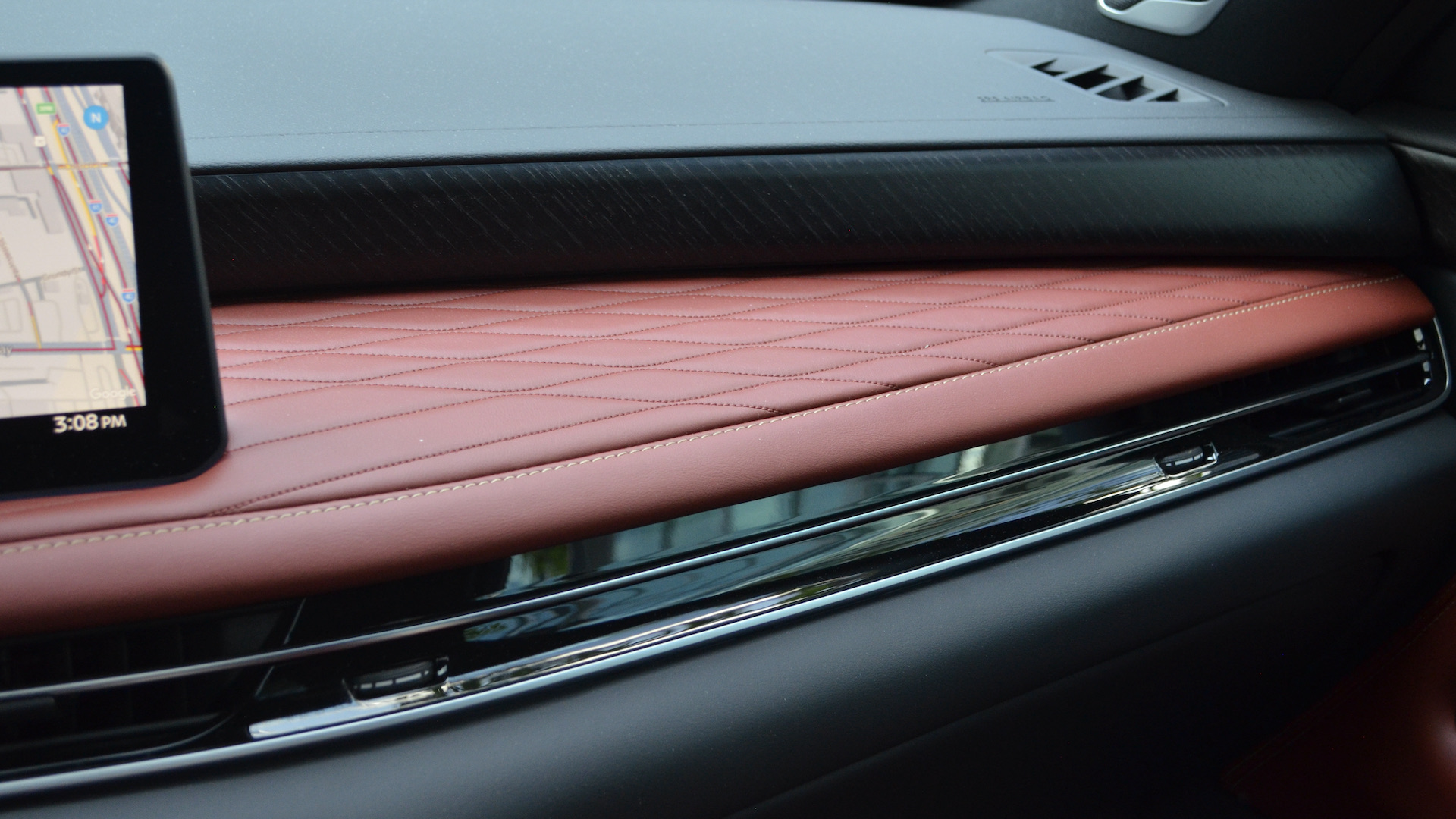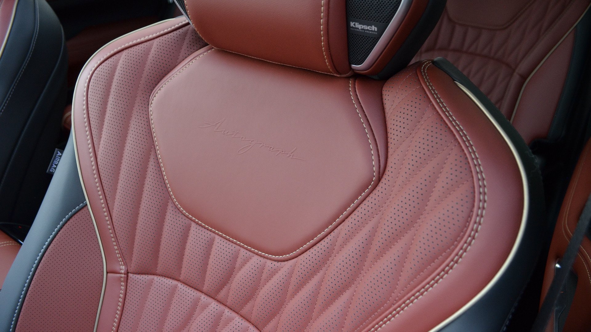 La déclinaison Autograph mise sur le raffinement. On y retrouve des appliques en bois à pores ouverts, une planche de bord habillée de cuir matelassé, des protections en aluminium dans l’espace de chargement ainsi que des seuils de portes illuminés à l’avant comme à l’arrière. Les sièges en cuir semi-aniline adoptent un motif de surpiqûres diagonales asymétriques, inspiré des plis d’un kimono. À ce niveau, les sièges avant sont chauffants, ventilés et même dotés d’une fonction de massage, tandis que les places arrière profitent également du chauffage. Avec certaines teintes comme le rouge, l’ambiance générale évoque une signature presque italienne, qui apporte une touche distinctive. La finition générale est impeccable.