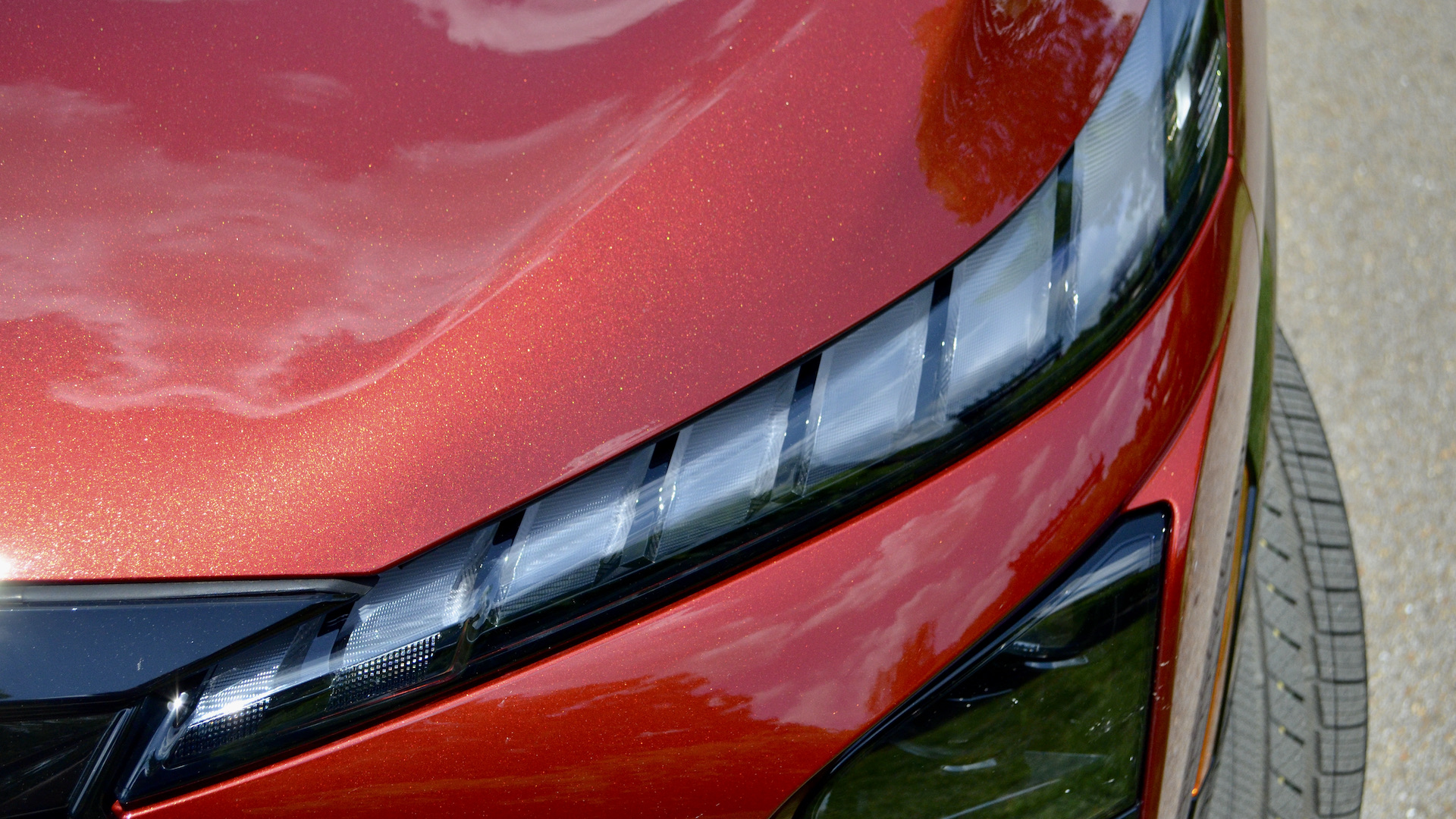 Plus bas, les phares principaux sont dissimulés dans ce qui ressemble à des prises d’air latérales, encadrant une immense calandre. Celle-ci s’inspire, une fois de plus, des forêts de bambous japonaises. Sur les déclinaisons Sport et Autograph, le traitement visuel se veut plus expressif, évoquant un mouvement de bambous balayés par le vent en pleine tempête.