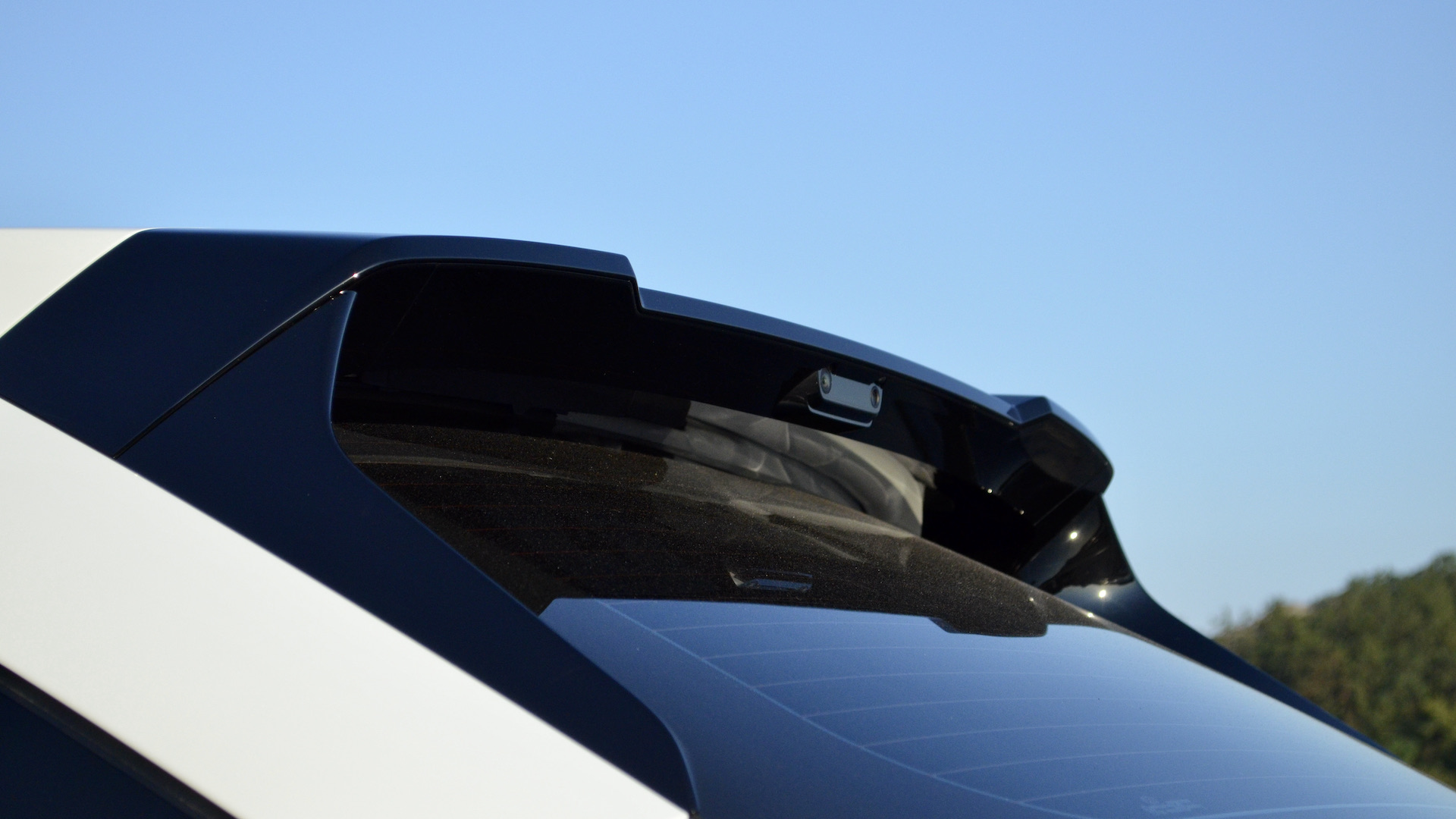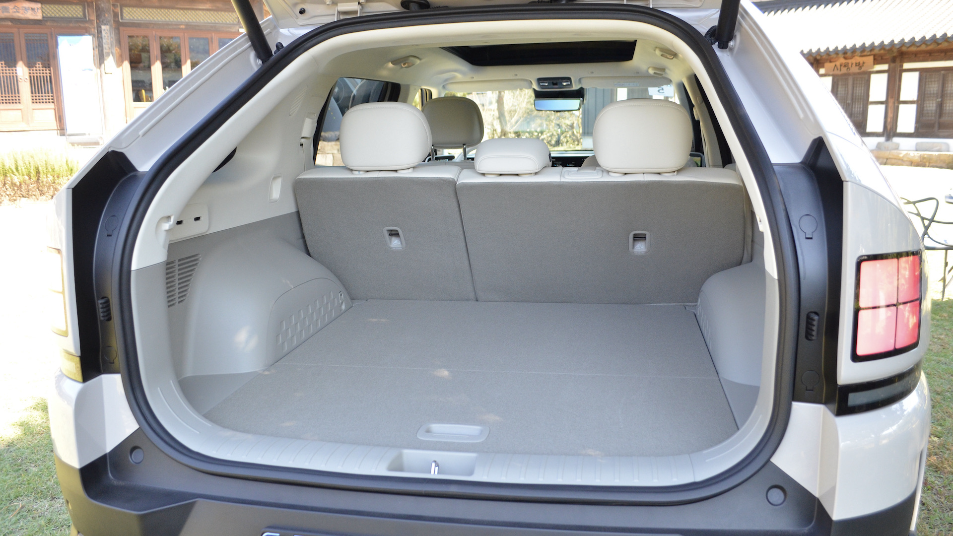 Au Canada, il y aura deux versions disponibles, l’une avec des jantes de 18 pouces et l’autre avec des 19 pouces. Ces roues seront l’unique moyen de les distinguer. Le style multiplie les détails, comme les lignes diagonales au panneau de custode qui imitent un vêtement traditionnel sud-coréen. À l’arrière, la lunette fait penser au Pontiac Aztek, mais mieux fait. Les quatre carrés sont de retour autant pour les feux que pour le feu de frein central. Je dois souligner que la finition et la qualité de l’assemblage de mon véhicule étaient impeccables.