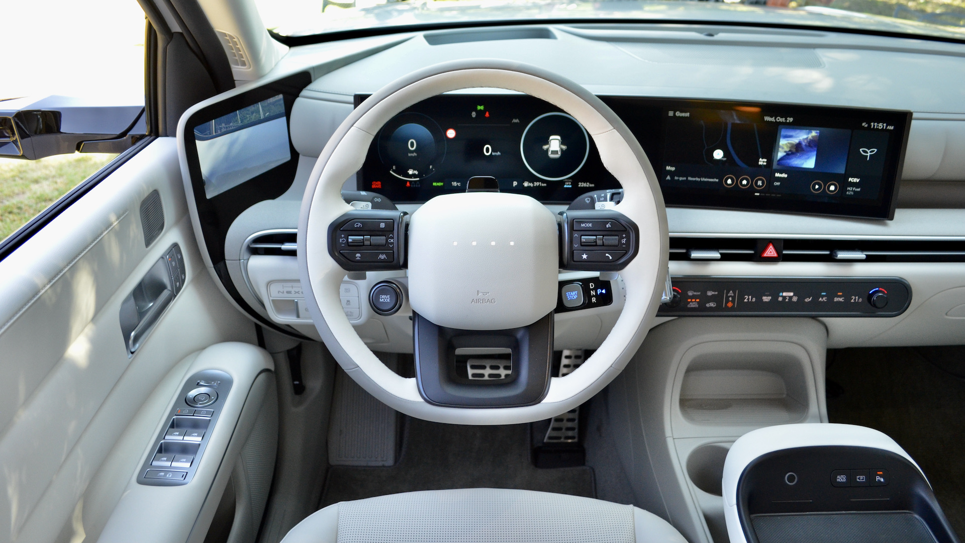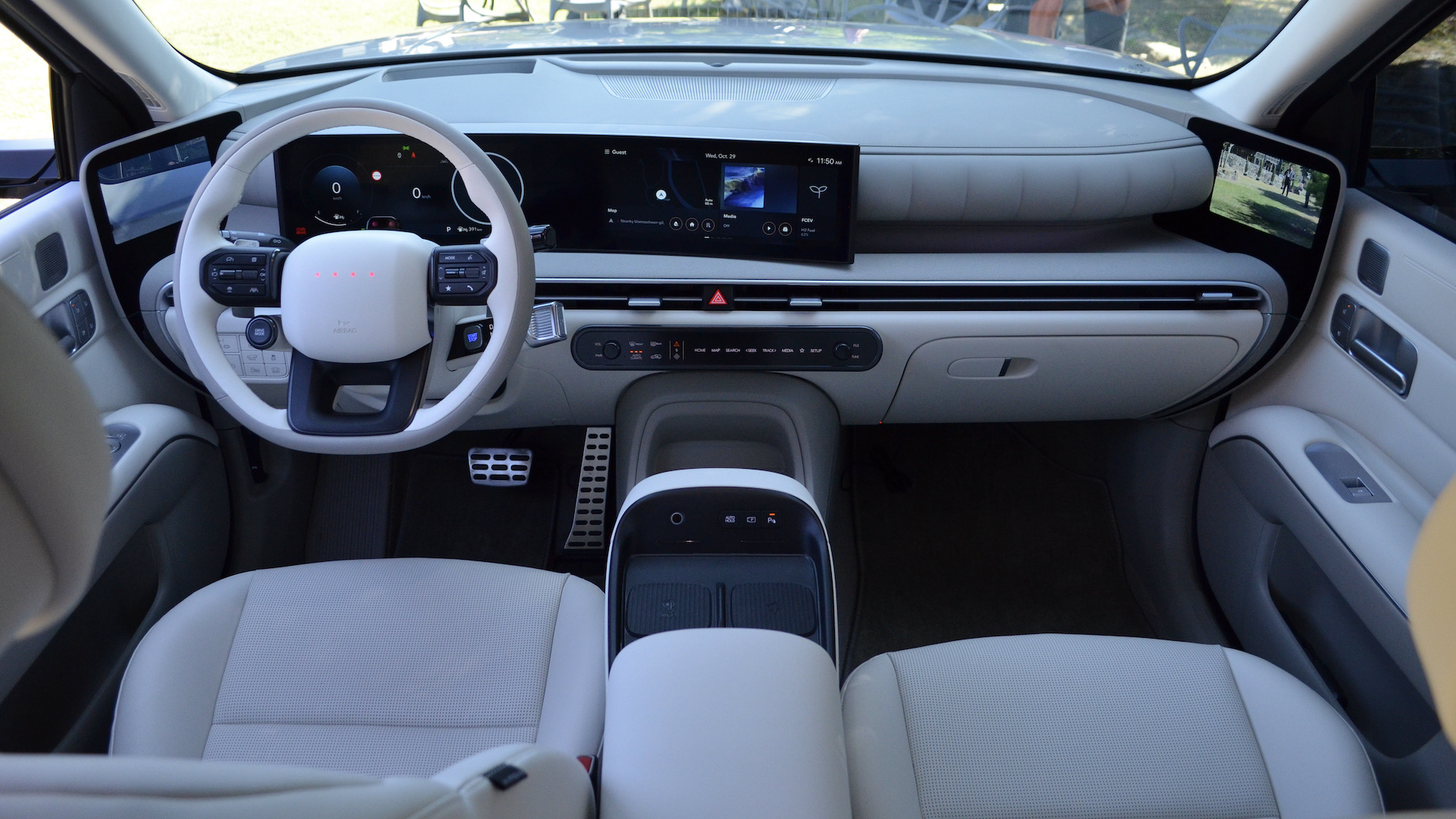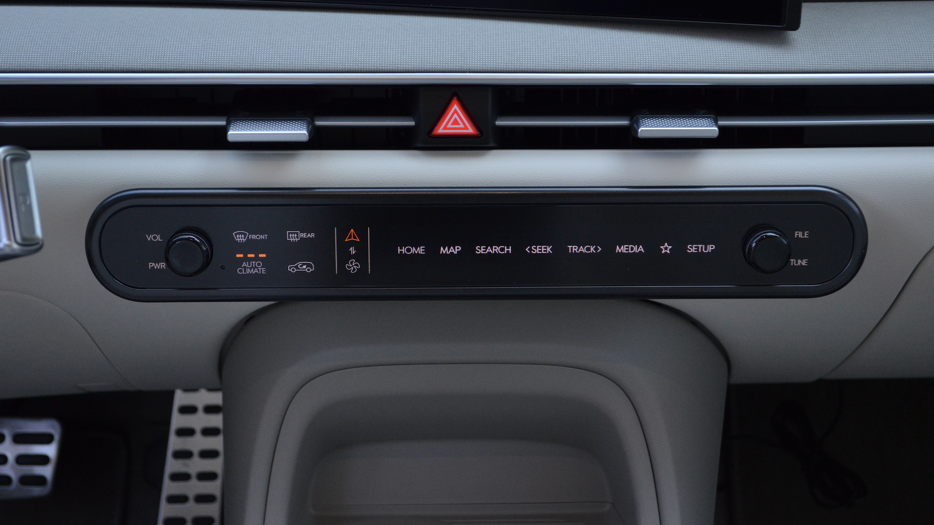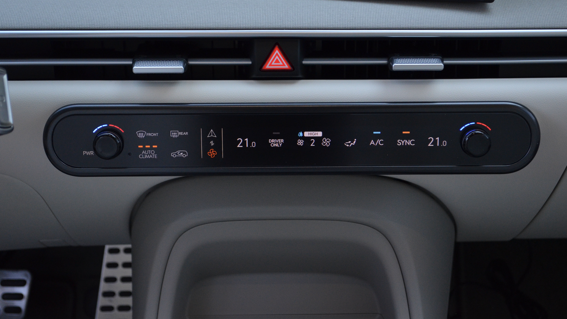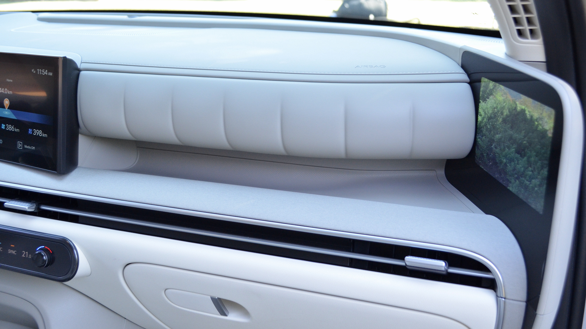 On retrouve une fois de plus l’aménagement Connected Car Navigation Cockpit constitué de deux écrans de 12,3 pouces. C’est une approche conventionnelle pour Hyundai, mais dont l’ergonomie est prouvée. Encore une fois, on peut critiquer le manque de possibilité pour l’affichage, surtout que l’on est dans un véhicule avec une motorisation singulière, un peu d’excentricité serait appréciée.