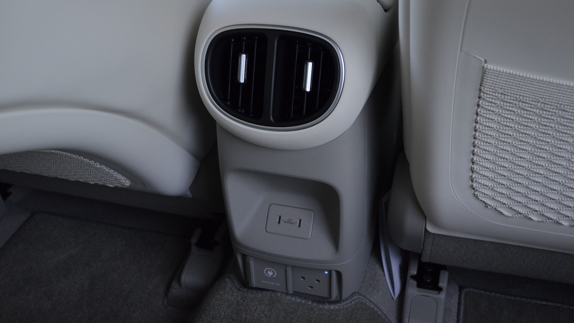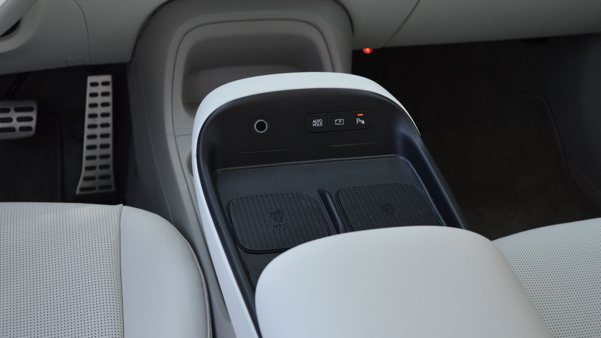 Plus bas, les commandes de climatisations sont claires, mais la taille des touches demeure petite, c’est aussi le cas avec le sous-tableau qui apparait en changeant l’interface. À la console, on intègre deux plaques de recharge par induction et beaucoup de rangement. Sa vocation pratique est bien faite, d’autant plus que l’on retrouve une tablette devant le passager.