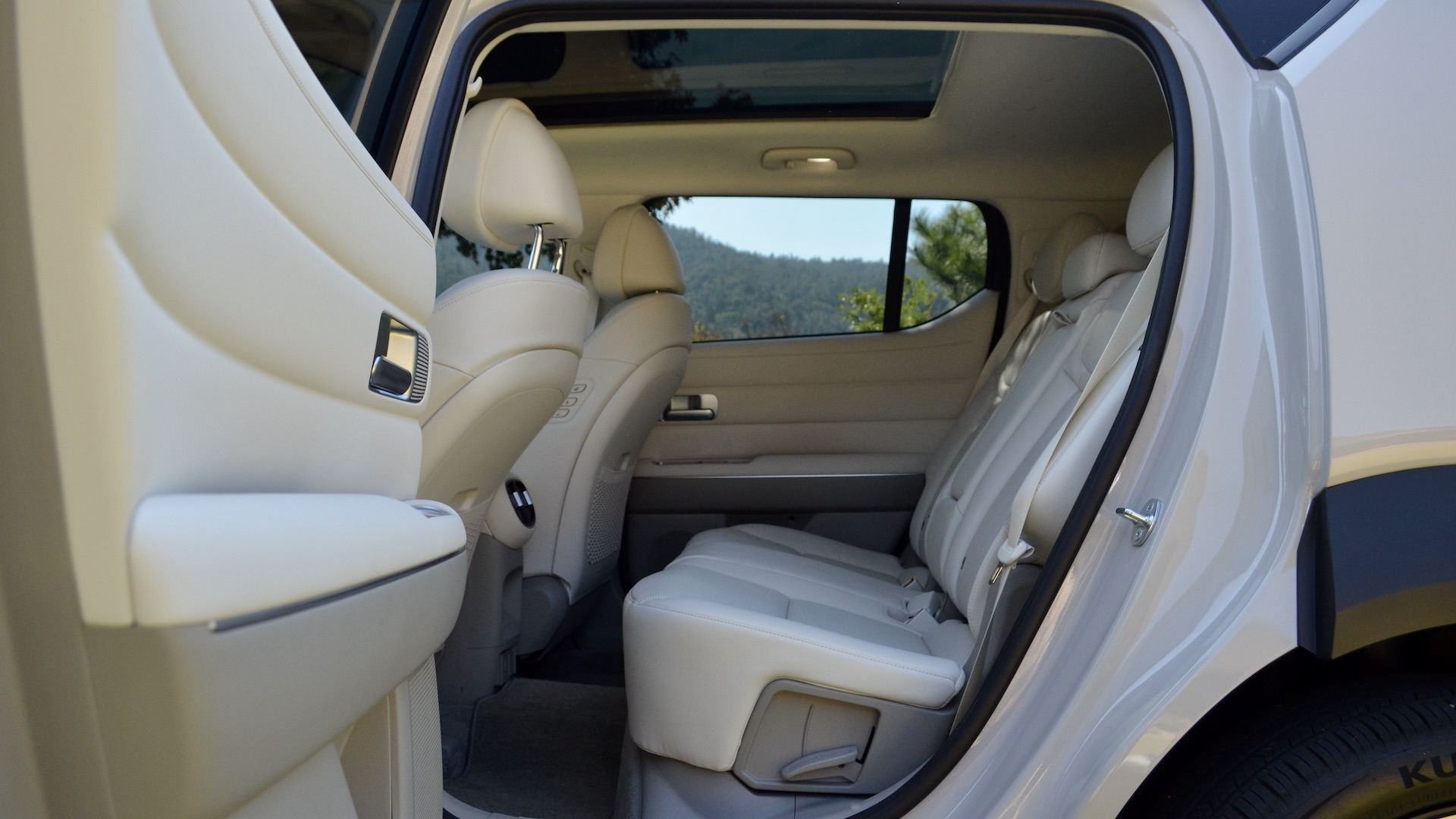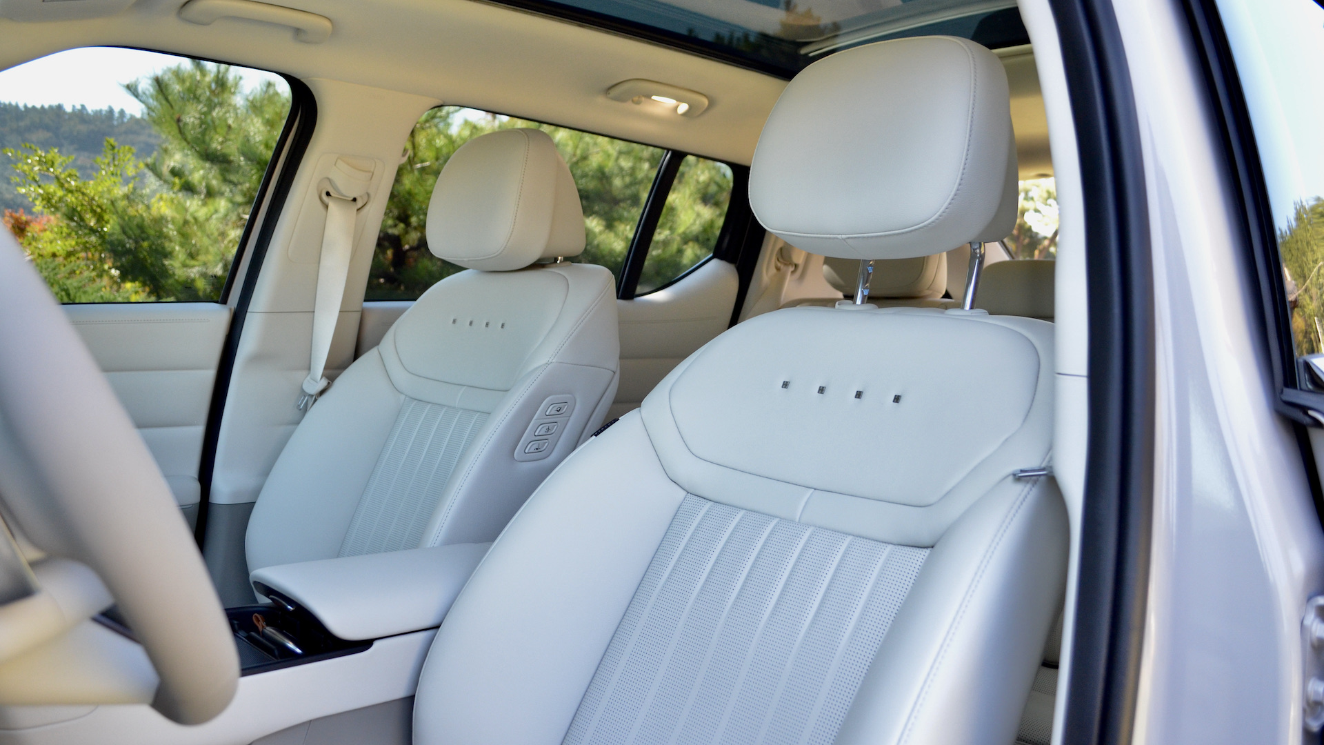 Étant un VUS de taille compact, l’accès à bord est idéal. Dès l’ouverture de la porte, découvre un environnement à la finition et aux matériaux sans reproche. On parle ici d’un niveau de qualité similaire à Genesis. La version à l’essai venait avec un habillage de couleur crème du plus bel effet, le tout en cuir au traitement écologique et aux matières de sources responsables.
