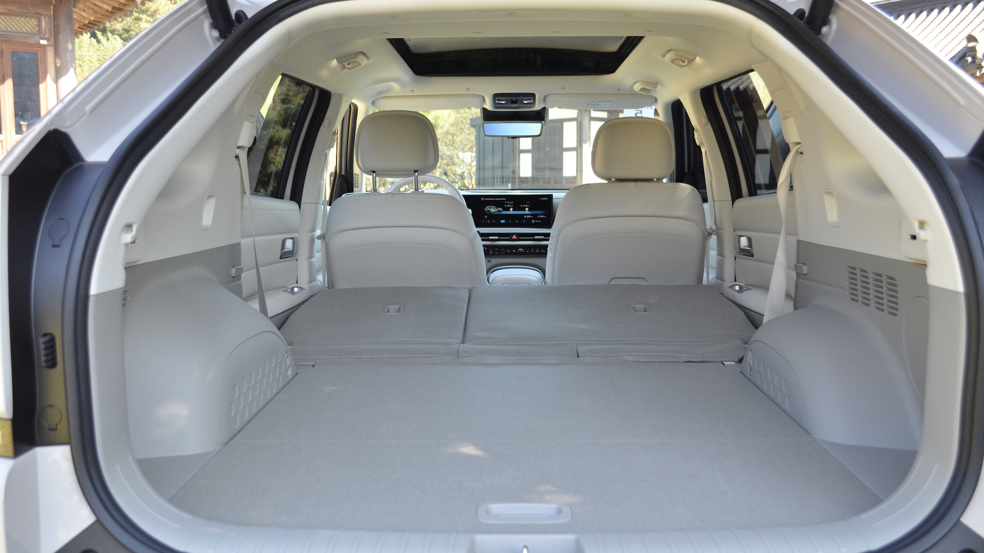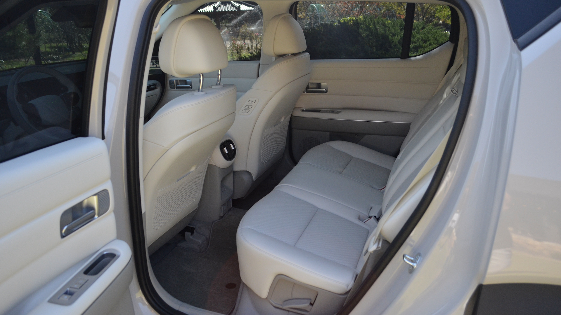 L’accès à l’arrière est impressionnant avec une ouverture de la porte à près de 90 degrés. La banquette divisible 60/40 offre un bon confort alors que les dégagements sont très amples pour au moins deux personnes adultes. Le Nexo est un produit étroit, donc une troisième personne entrainerait une perte de confort. Au coffre, de base c’est 993 litres et, en abattant les dossiers, on excède les 1 700 litres.