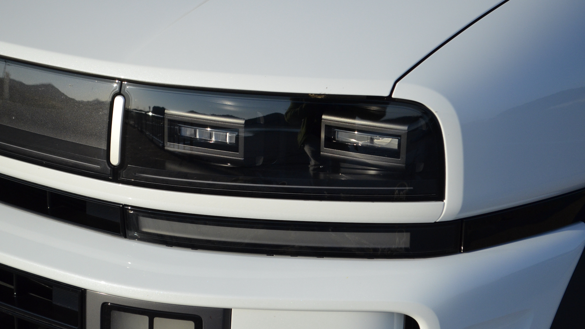À l’image des plus récents produits de la marque, on joue la carte des angles. Étant électrifié, les pixels sont bien présents, c’est une signature du constructeur. Le look général à des airs des années 1980 que je ne déteste pas du tout, en fait, je trouve qu’il a un look distinctif, sans tomber dans l’excentricité. Il y a même les quatre carrés que l’on voit sur les volants depuis quelques années qui signifient H en morse. Les projecteurs rectangulaires intègrent des DEL et une technologie matricielle pour l’éclairage nocturne.