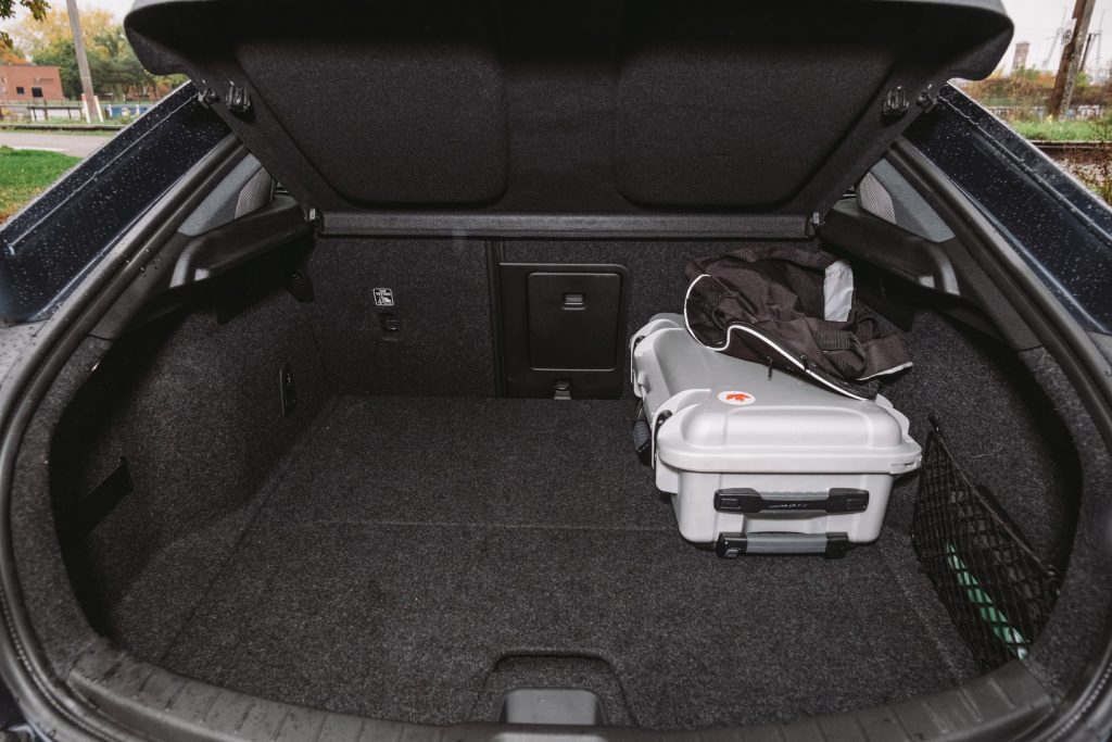 L’habitacle n’a pas changé non plus. Les sièges WeaveTech sont exceptionnellement souples et confortables, tandis que la banquette arrière peut facilement accueillir deux adultes. Le coffre arrière est tout à fait utilisable et spacieux, tandis que les 35 litres du coffre avant servent principalement de deuxième boîte à gants.