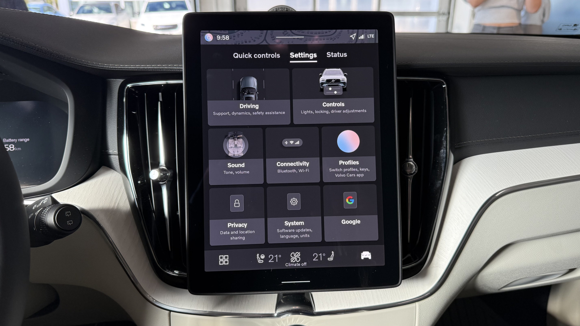À bord, l’ambiance reste raffinée, mais la nouveauté majeure est un écran tactile de 11,2 pouces qui remplace l’ancien de 9 pouces. L’interface est rapide, fluide et intuitive — une amélioration spectaculaire par rapport au système lent qu’elle remplace. La puissance de traitement aurait été multipliée par dix, et ça se sent. Ce n’est pas parfait pour autant : Apple CarPlay perdait parfois la connexion malgré l’utilisation d’un câble neuf, et certaines commandes, notamment de climatisation, demandent un peu trop d’attention.