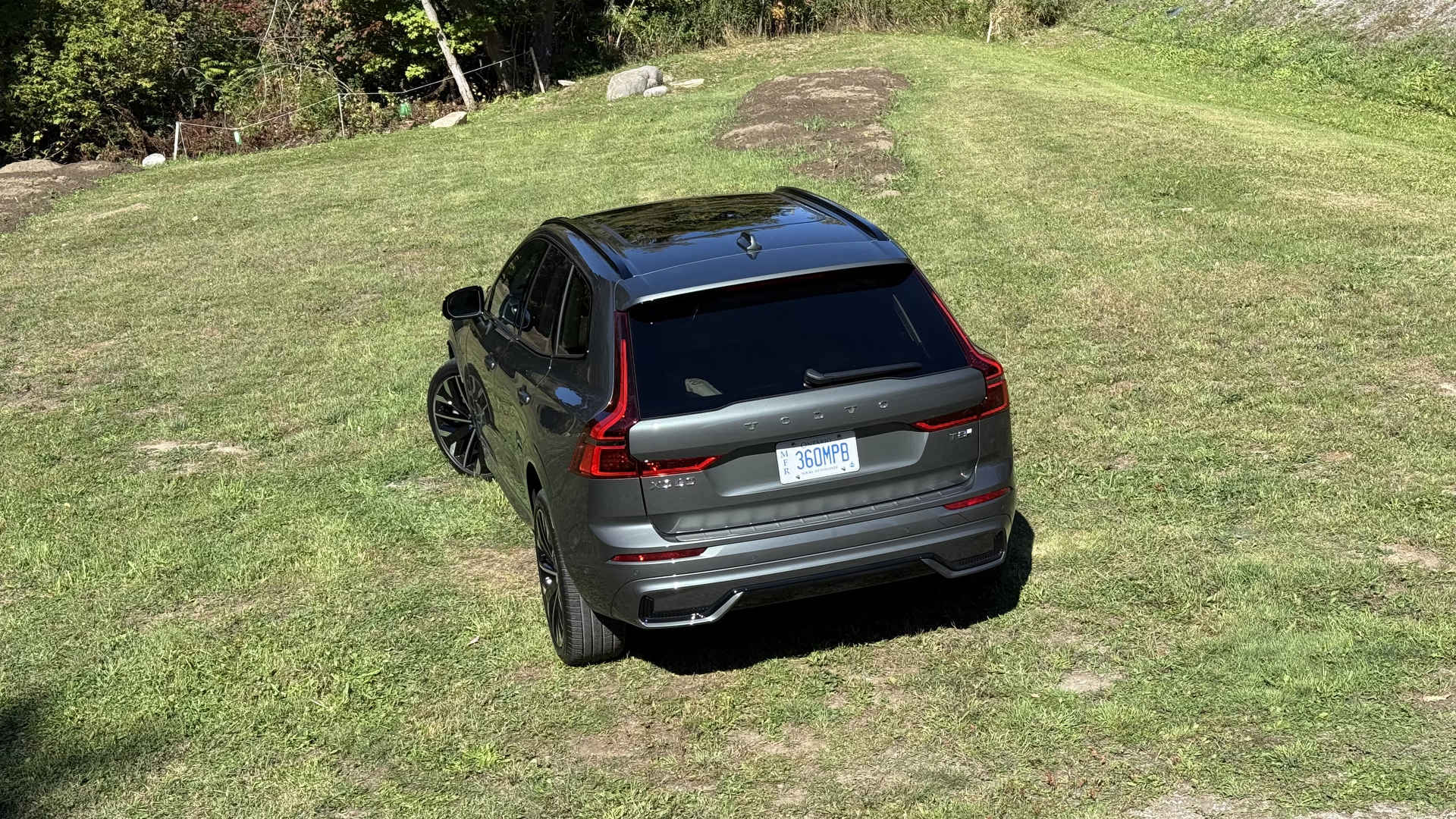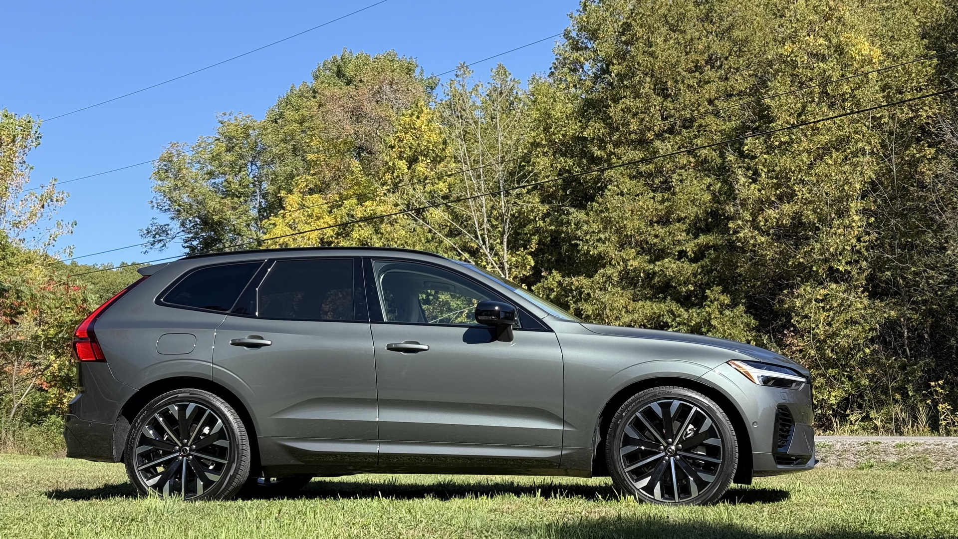 De loin, peu de changements sautent aux yeux, et c’est parfait ainsi. Le design Volvo a toujours misé sur l’intemporalité plutôt que la mode éphémère. La calandre s’inspire désormais du XC90, tandis que les pare-chocs et feux ont été légèrement retouchés. Mon véhicule d’essai portait la nouvelle teinte Forest Lake, un gris-bleu vert doux et élégant. Elle sied parfaitement au caractère du XC60 : distingué sans effort.