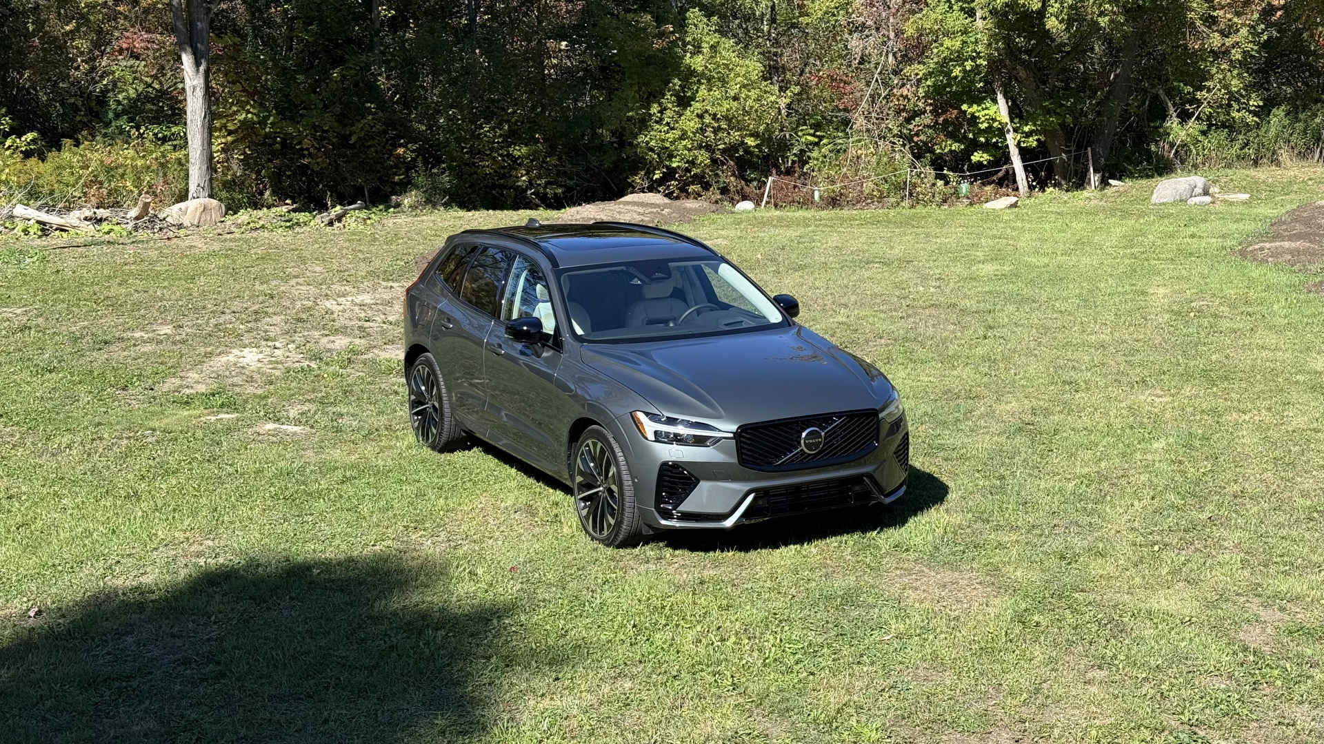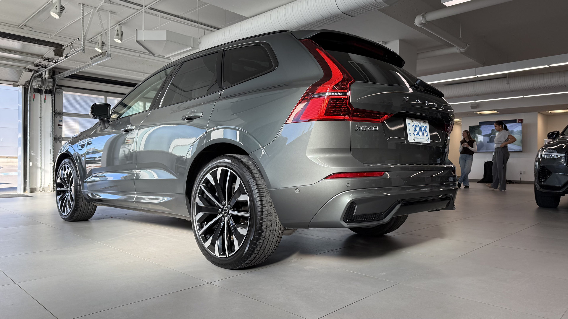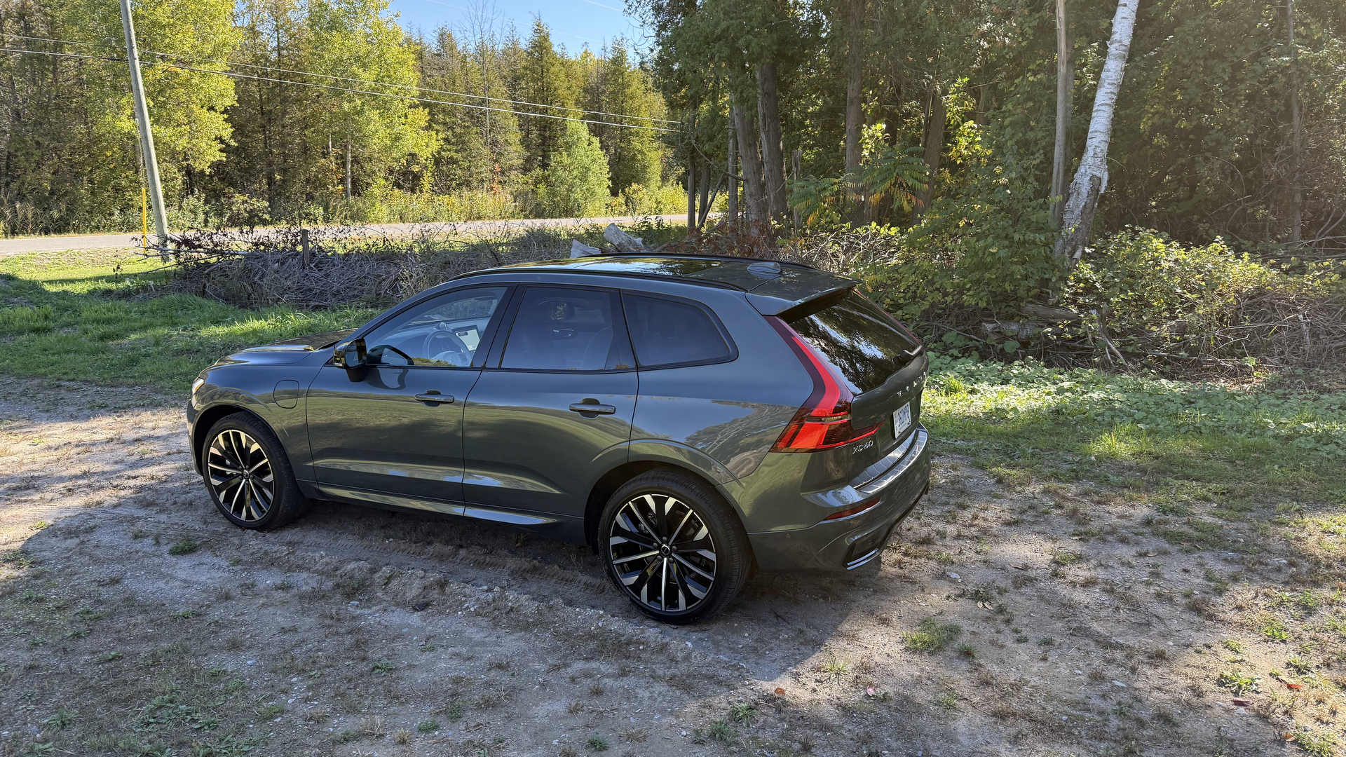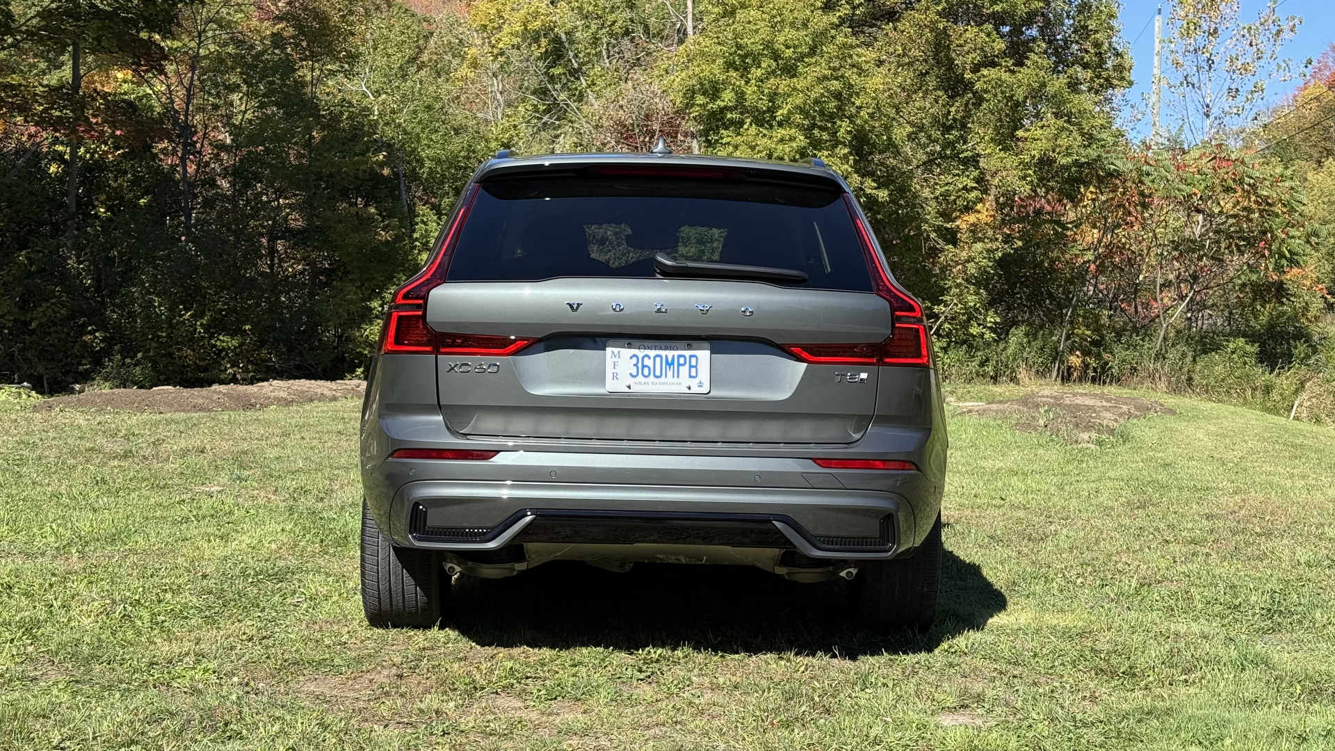 De loin, peu de changements sautent aux yeux, et c’est parfait ainsi. Le design Volvo a toujours misé sur l’intemporalité plutôt que la mode éphémère. La calandre s’inspire désormais du XC90, tandis que les pare-chocs et feux ont été légèrement retouchés. Mon véhicule d’essai portait la nouvelle teinte Forest Lake, un gris-bleu vert doux et élégant. Elle sied parfaitement au caractère du XC60 : distingué sans effort.