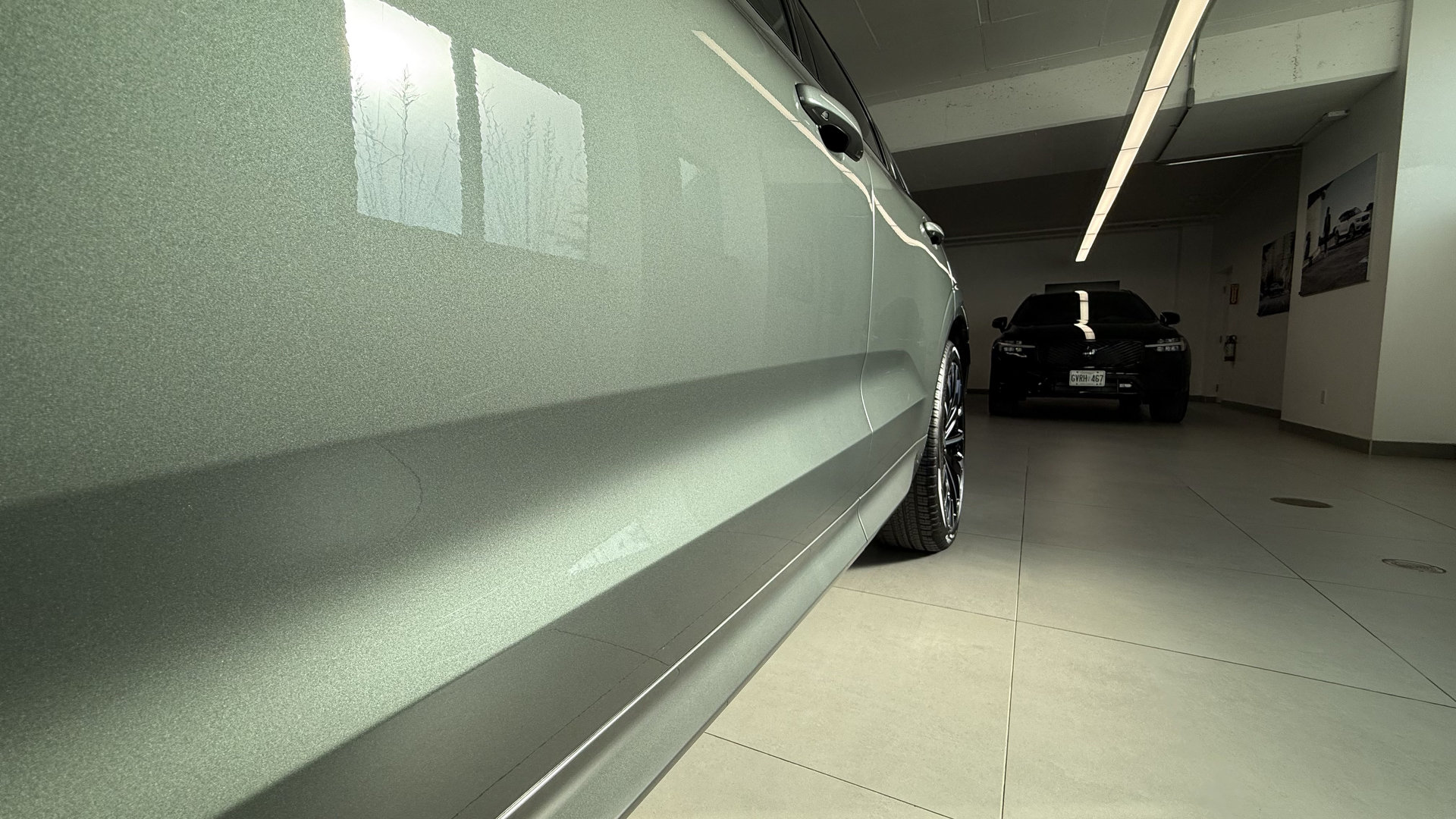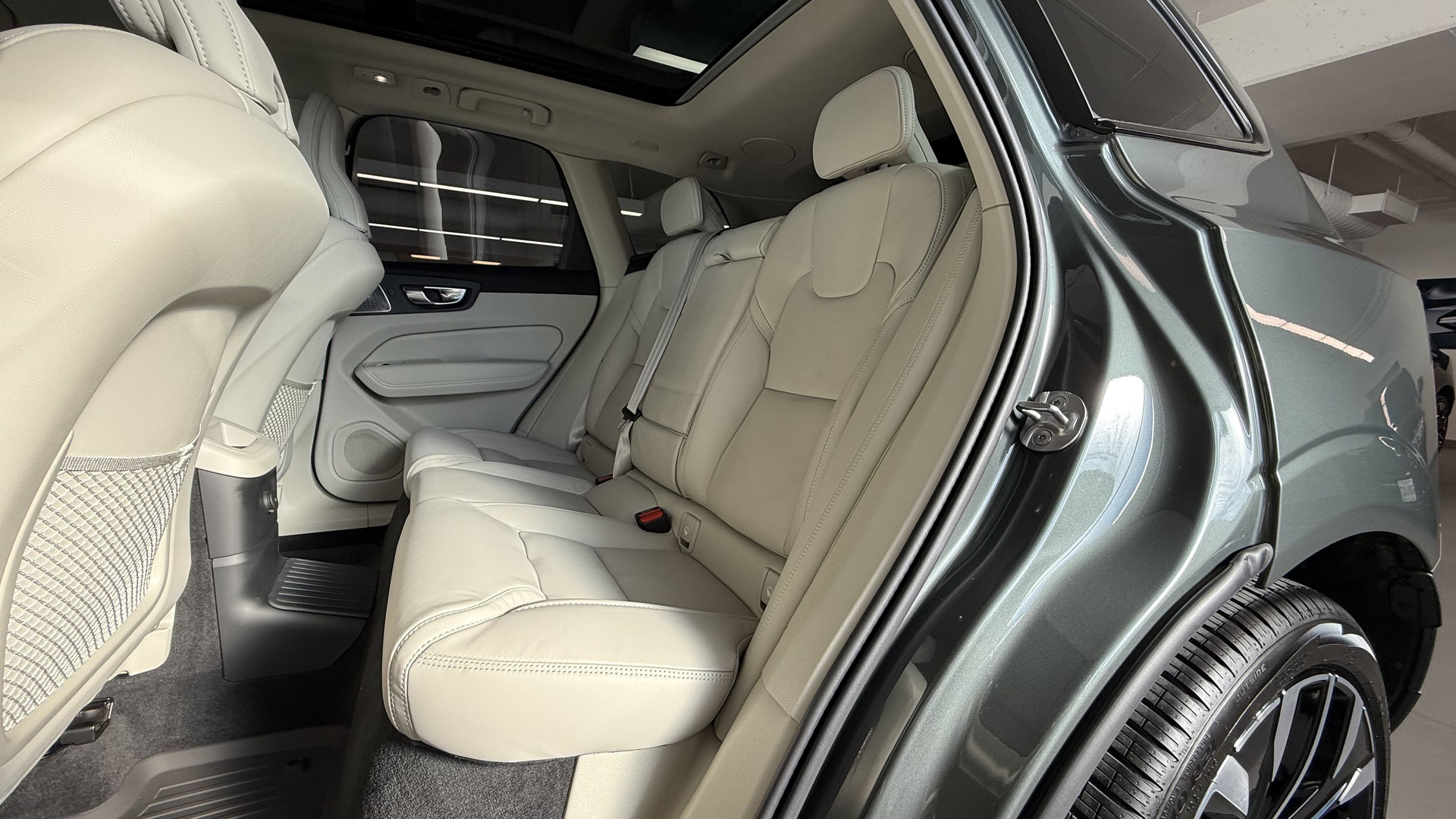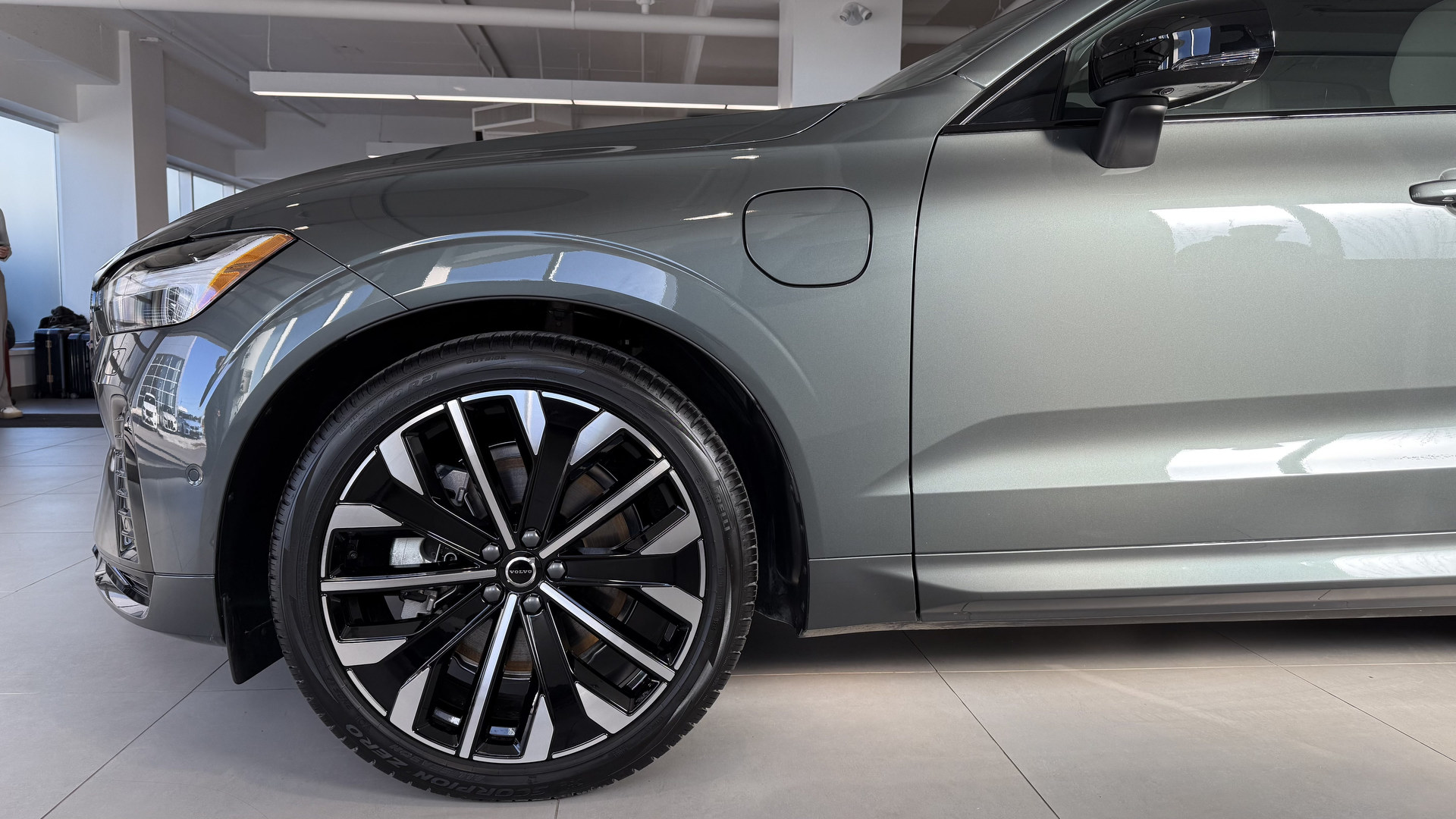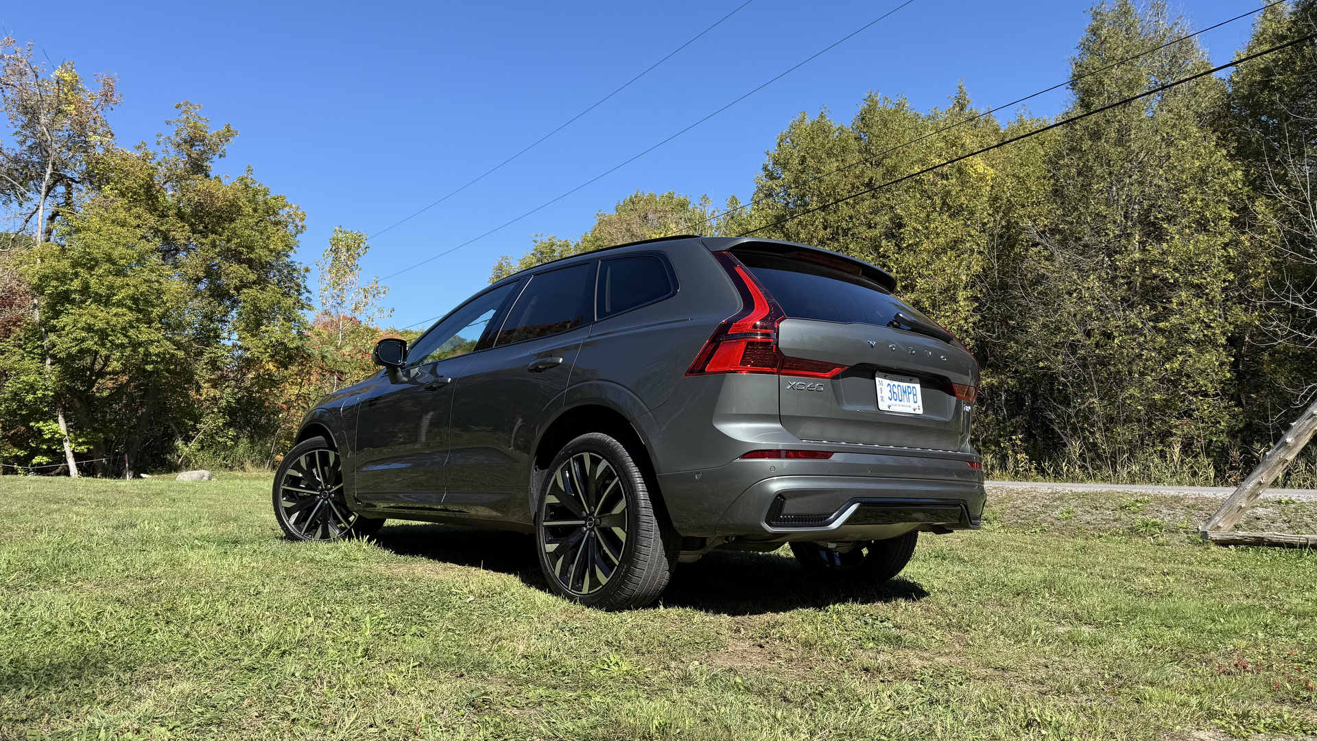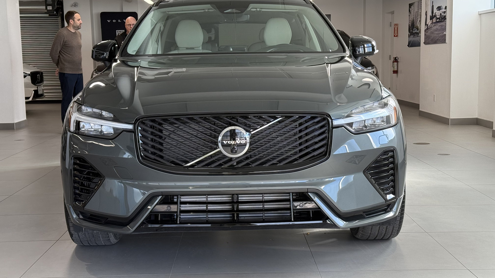 De loin, peu de changements sautent aux yeux, et c’est parfait ainsi. Le design Volvo a toujours misé sur l’intemporalité plutôt que la mode éphémère. La calandre s’inspire désormais du XC90, tandis que les pare-chocs et feux ont été légèrement retouchés. Mon véhicule d’essai portait la nouvelle teinte Forest Lake, un gris-bleu vert doux et élégant. Elle sied parfaitement au caractère du XC60 : distingué sans effort.