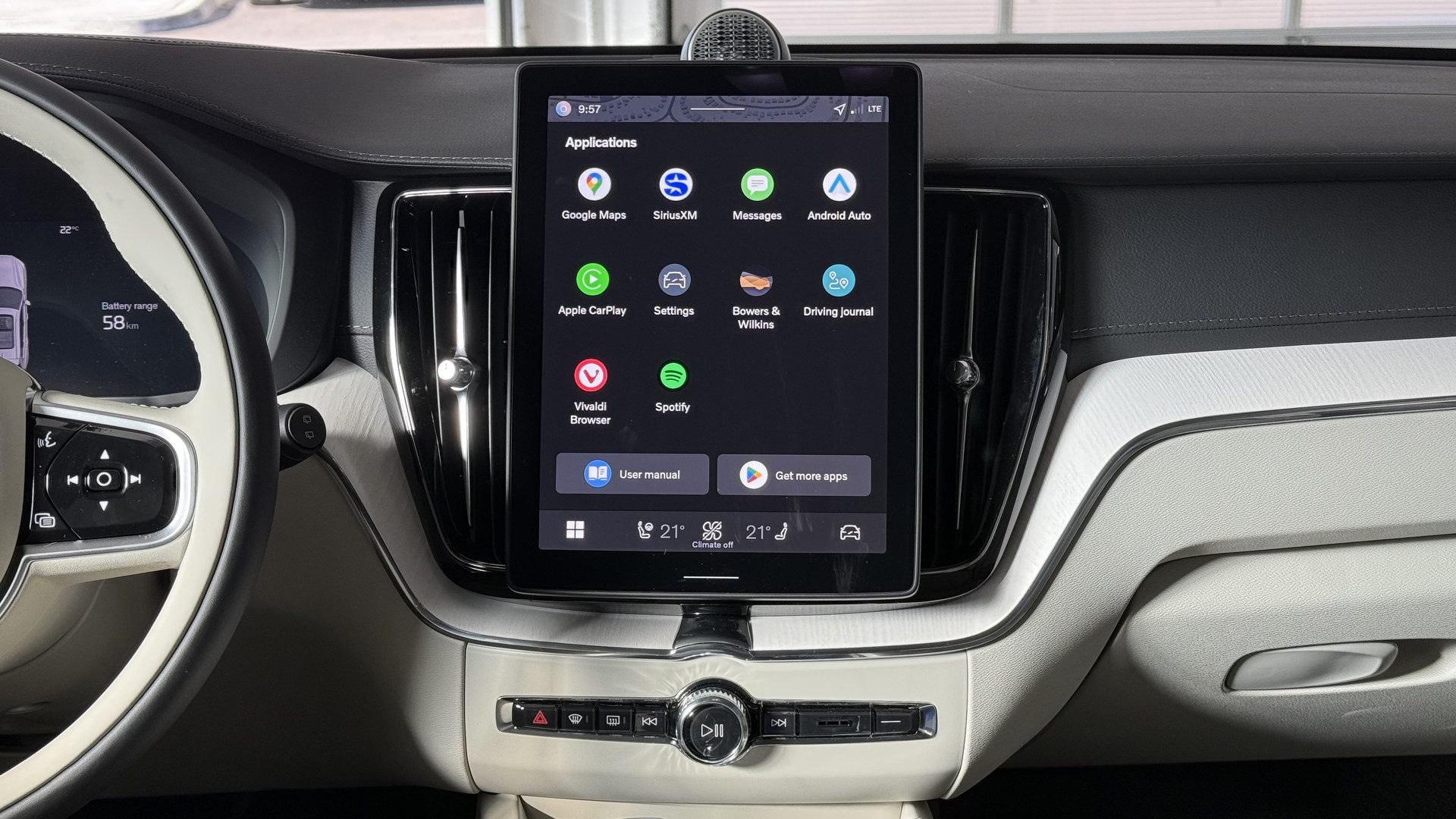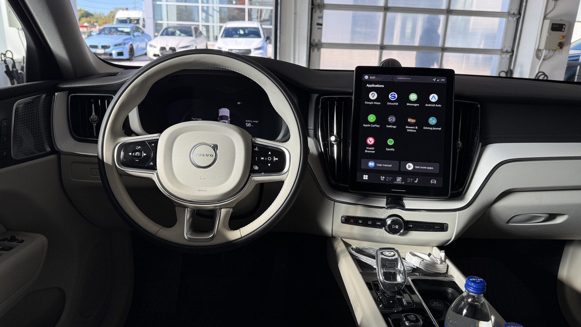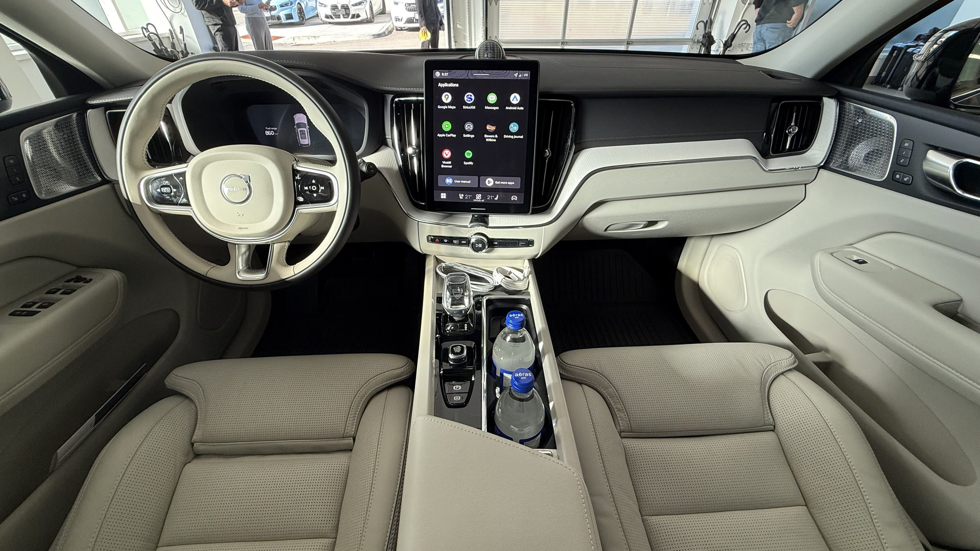 À bord, l’ambiance reste raffinée, mais la nouveauté majeure est un écran tactile de 11,2 pouces qui remplace l’ancien de 9 pouces. L’interface est rapide, fluide et intuitive — une amélioration spectaculaire par rapport au système lent qu’elle remplace. La puissance de traitement aurait été multipliée par dix, et ça se sent. Ce n’est pas parfait pour autant : Apple CarPlay perdait parfois la connexion malgré l’utilisation d’un câble neuf, et certaines commandes, notamment de climatisation, demandent un peu trop d’attention.