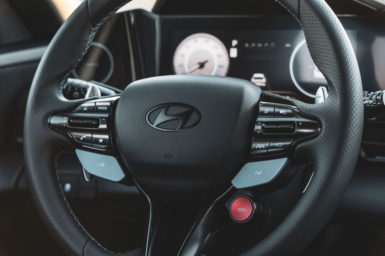 La Hyundai Elantra N 2024, plus sportive, fait également peau neuve. Elle arbore une double calandre noire prononcée, un double système d’échappement, des jantes en alliage forgé de 19 pouces chaussées de pneus Michelin Pilot Sport 4S, des seuils latéraux rouges, ainsi qu’un volant et un système d’infodivertissement revus. Une série d’améliorations technologiques garantit une conduite engageante, notamment le logiciel et le matériel ECS avancés, un nouvel étrier de boîte de vitesses pour plus de précision, un châssis optimisé et des raffinements de la suspension arrière, tous mettant l’accent sur la direction et l’agilité.