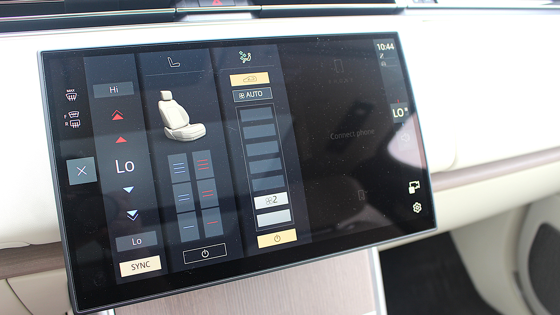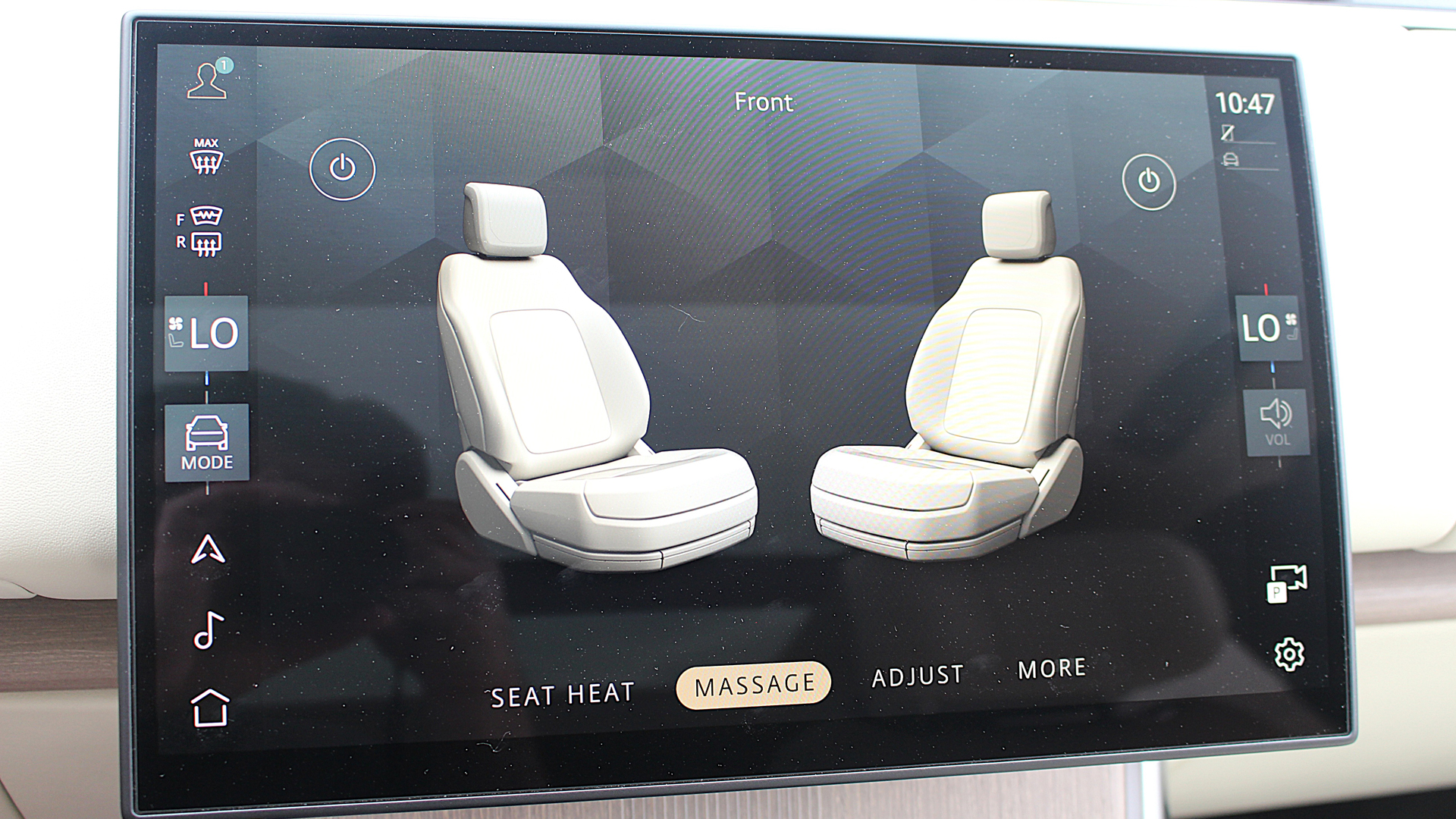 La liste d’équipement de série est longue, bien entendu, comprenant les rétroviseurs chauffants à rabattage électrique, le hayon électrique à deux battants, la suspension pneumatique, la direction aux quatre roues, les portes à fermeture adoucie, le toit panoramique coulissant, le pare-brise chauffant, les essuie-glaces à capteur de pluie, les phares autonivelants, la colonne de direction à réglage électrique, le volant chauffant, les sièges en cuir perforé, le climatiseur automatique à trois zones, le système de caméras à vue périphérique, la surveillance des angles morts, le sonar de stationnement avant et arrière, la recharge de téléphones par induction, la chaîne audio Meridian à 16 haut-parleurs, le système multimédia Pivi Pro à écran tactile de 13,1 pouces ainsi que l’intégration Apple CarPlay et Android Auto sans fil.