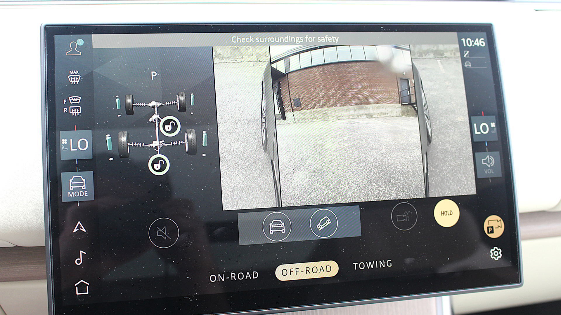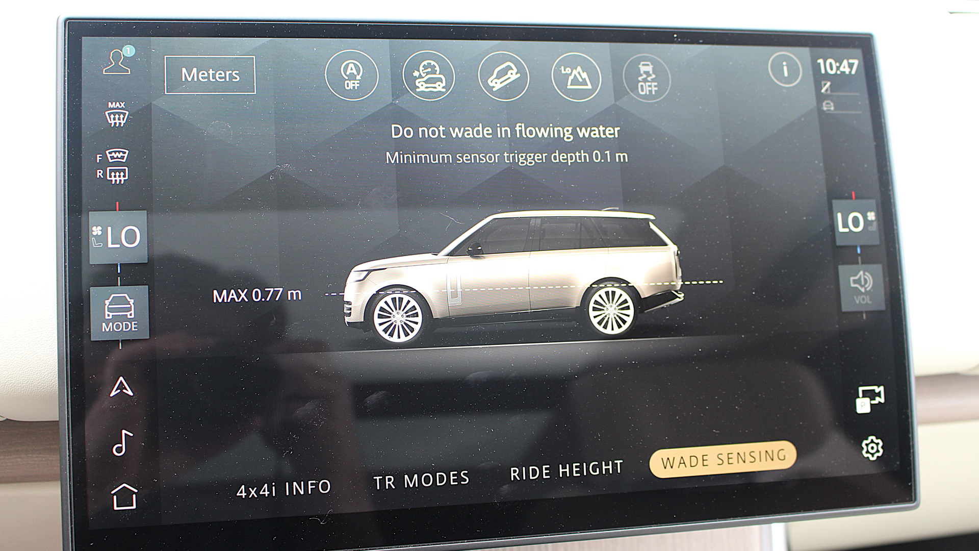 Le Range Rover 2025 peut remorquer une charge maximale de 3 500 kilogrammes ou 7 716 livres, avec les motorisations P400, P530 et P615, et de 3 000 kg ou 6 614 livres avec les P460e et P550e. Il peut aussi survivre aux bris d’aqueducs impromptus du centre-ville de Montréal, avec une profondeur de gué de 900 mm, grâce en partie à la suspension pneumatique faisant varier la garde au sol de 209 à 284 mm.