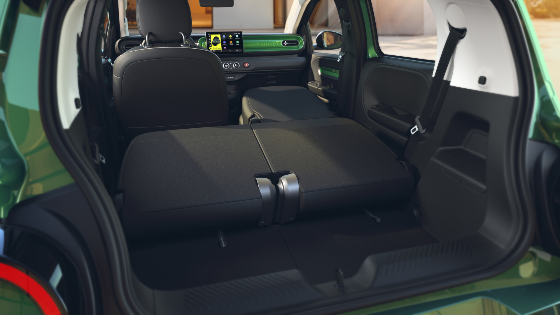 La Twingo E-Tech électrique offre 263 km d’autonomie et un intérieur modulable.