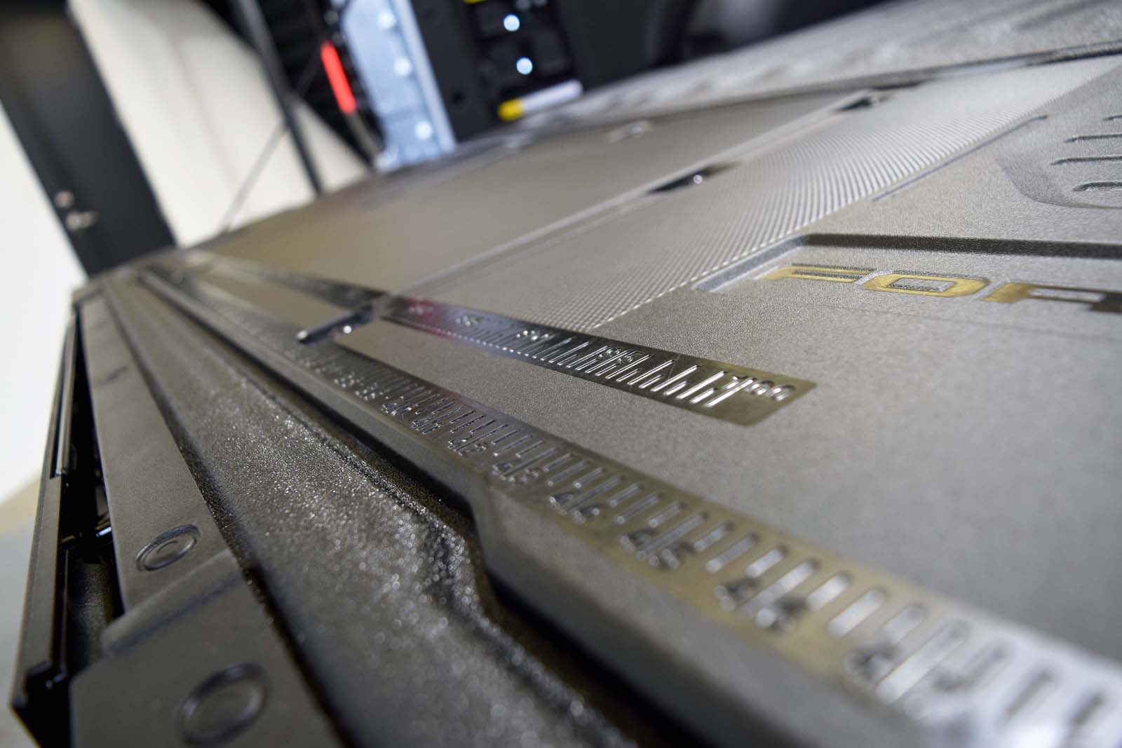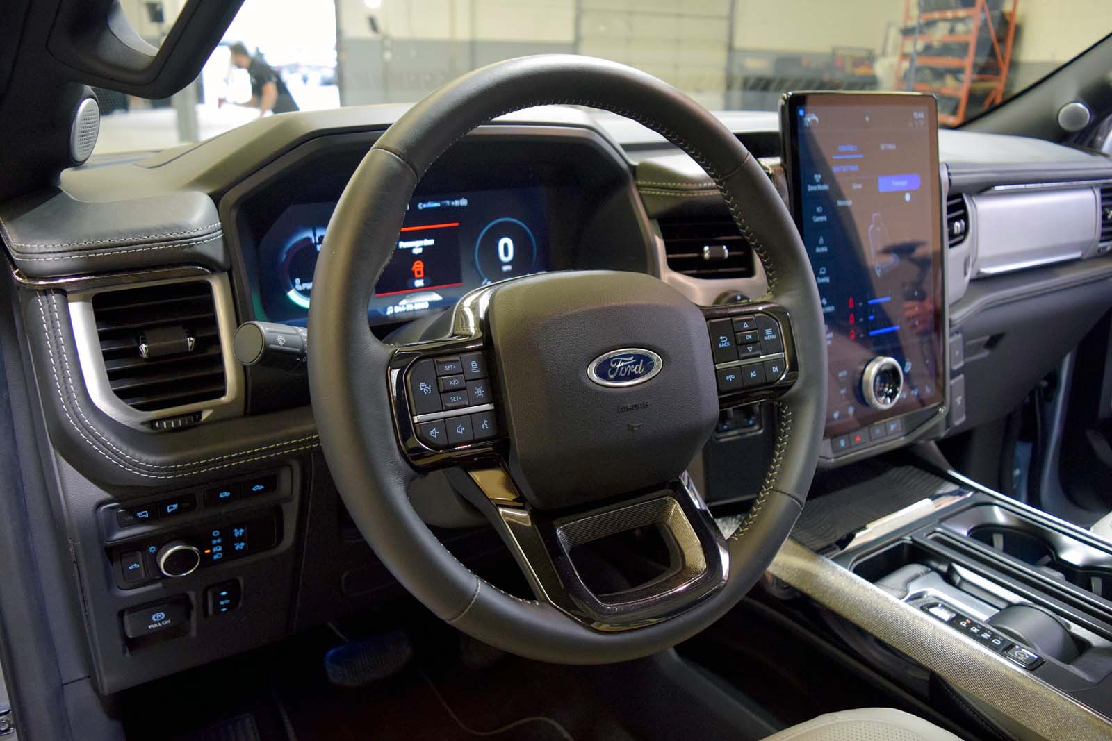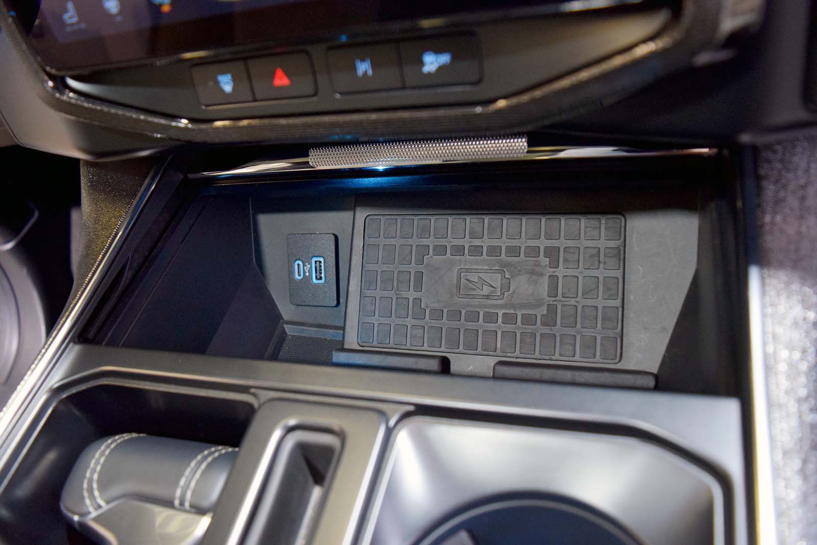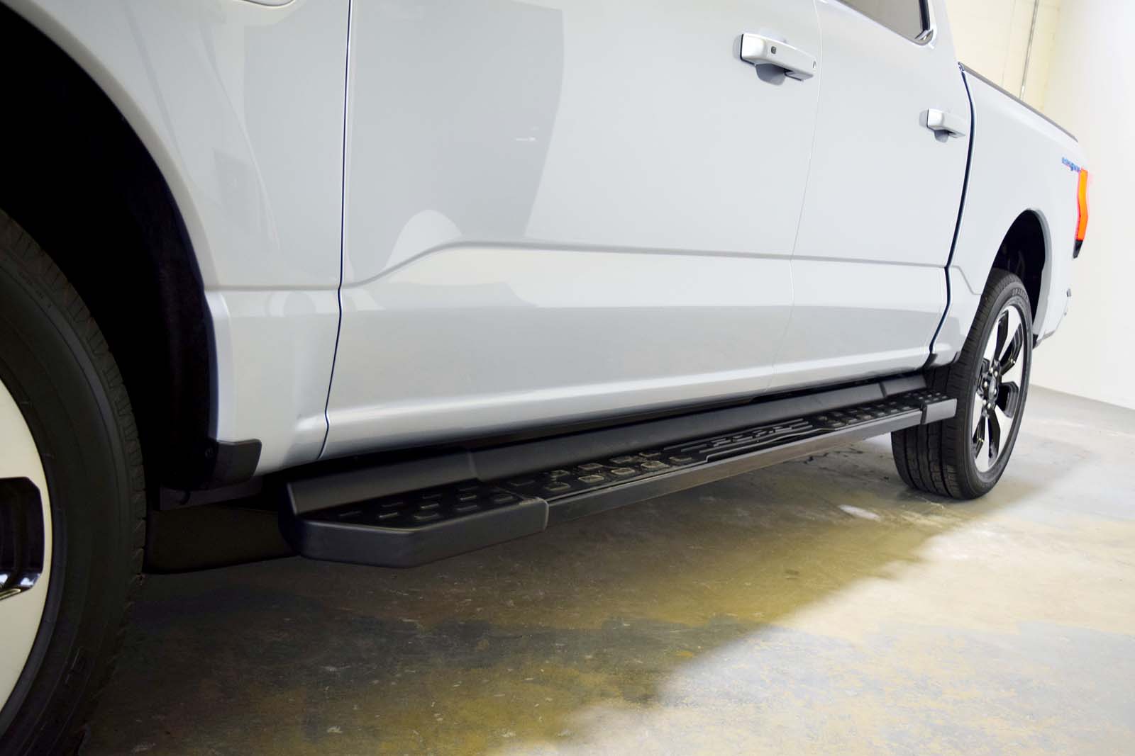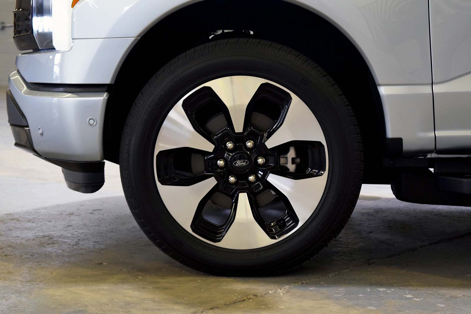 Au-delà du coffre utile, le véhicule arbore un port de charge du côté conducteur et une plaque similaire du côté passager pour la symétrie. Sur le côté du lit se trouve un badge 3D «Lightning», contrairement aux autres garnitures du F-150 qui présentent un graphique plat.