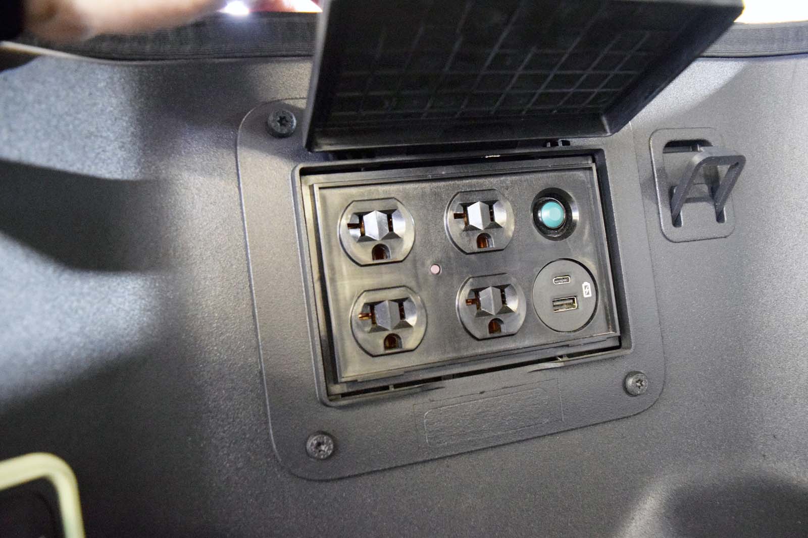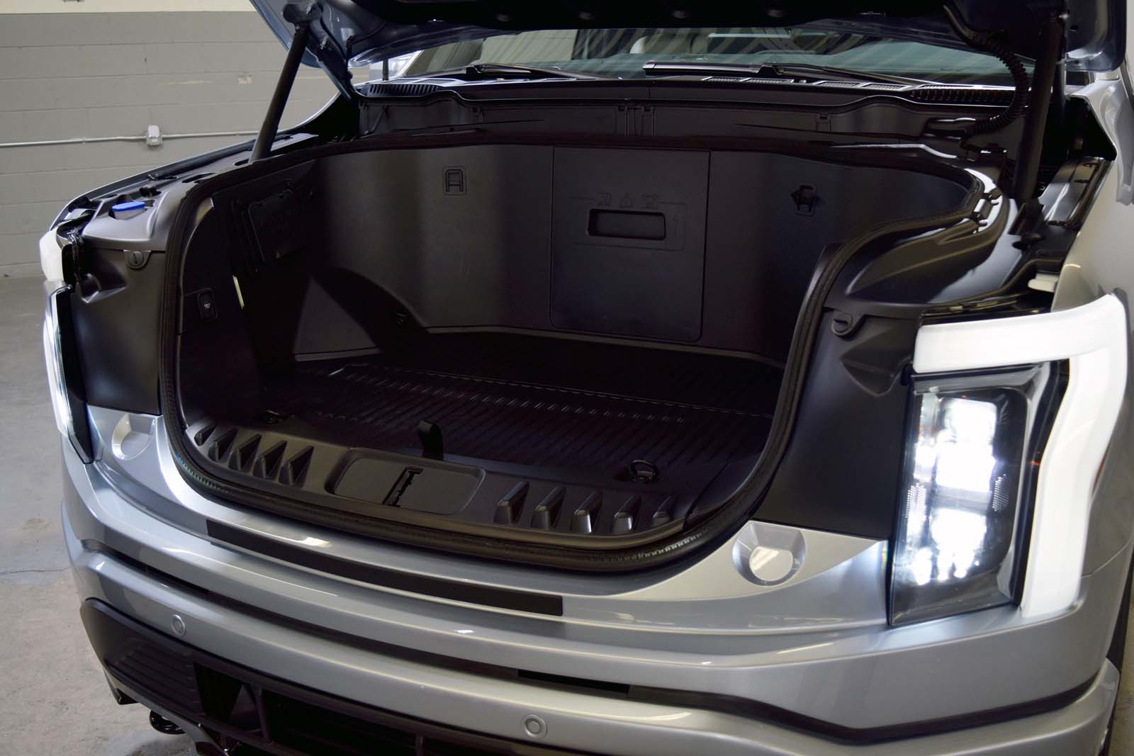 Naturellement, le Lightning a quelques fonctionnalités et astuces supplémentaires pour le faire ressortir. Le plus important se trouve sous le capot à l’avant. Sur simple pression d’un bouton, le capot du véhicule se soulève pour révéler un espace de rangement de 14,1 pieds cubes (400 litres) d’espace. Il y a même un compartiment qui peut être facilement divisé pour garder les articles à la verticale ou pour éviter qu’ils ne se mélangent. Il dispose également d’un sol drainable.