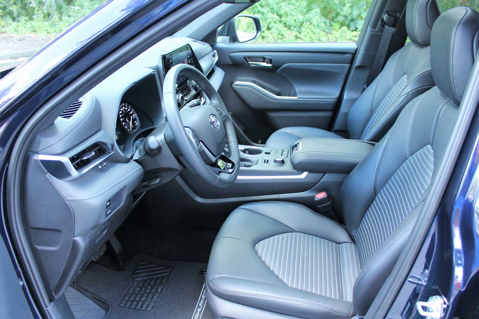 Le design intérieur du Highlander n’est pas piqué des vers, surtout dans les déclinaisons supérieures dotées d’un habillage en similicuir Softex ou en cuir véritable, une planche de bord coussinée avec surpiqûres et des garnitures texturées. Outre les ajouts aérodynamiques à la carrosserie, les blocs optiques noircis et deux embouts d’échappement, la version XSE essayée comprend notamment des sièges en Softex avec empiècements en tissu. On déplore toutefois le bruit désagréable des serrures électriques, abaissant légèrement le niveau de raffinement du véhicule.