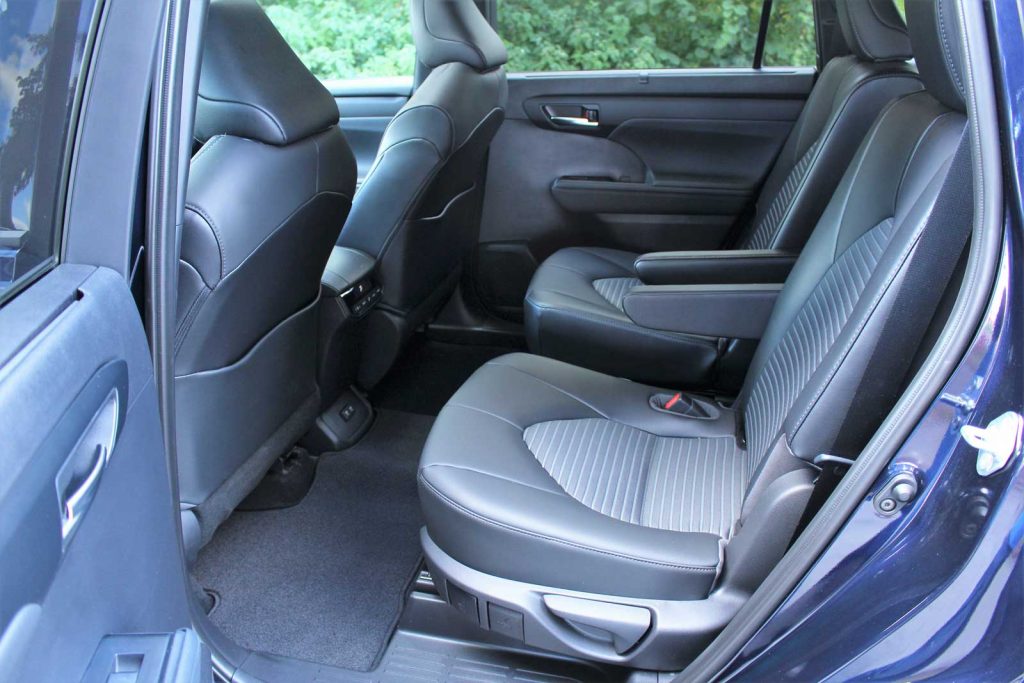 On profite de beaucoup d’espaces de rangement dans le Highlander, dont deux intégrés à la planche de bord pour y ranger nos téléphones. L’espace ne manque pas, même si cette nouvelle génération voit son dégagement pour la tête diminuer par rapport à la génération précédente. La troisième rangée qui est relativement accessible, et l’on note une amélioration de l’espace pour les jambes à la deuxième rangée. Certaines livrées sont équipées d’une banquette médiane pour une capacité de huit passagers, alors d’autres proposent deux sièges capitaine pour une capacité de sept occupants.