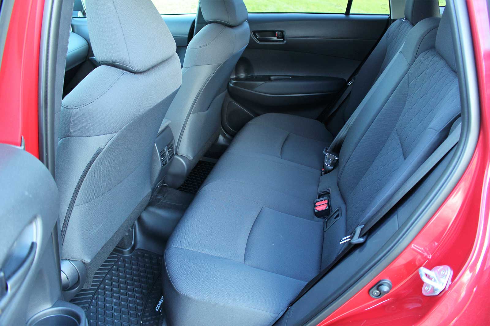 - La polyvalence est de mise ici. La Corolla Cross figure parmi les meilleurs en matière de volume de chargement, malgré les dossiers arrière ne se rabattant pas complètement à plat. Bien que le dégagement pour les jambes aux places arrière ne semble pas très généreux, l’assise haute aide au confort.