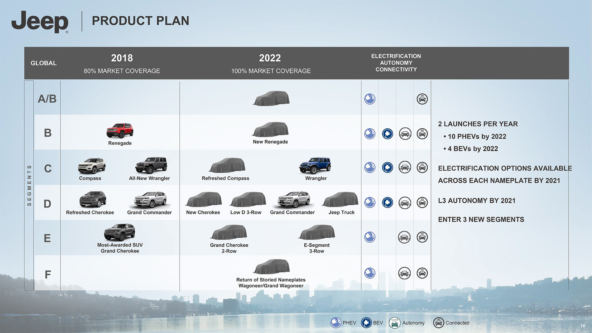Chacune des marques du groupe a eu droit à son plan quinquennal – à l’exception de Chrysler et Fiat qui ne vont pas bien depuis quelques années – et ce qui ressort surtout de ces autres stratégies à long terme, c’est que l’énergie électrique fait partie du plan pour toutes les marques de FCA.