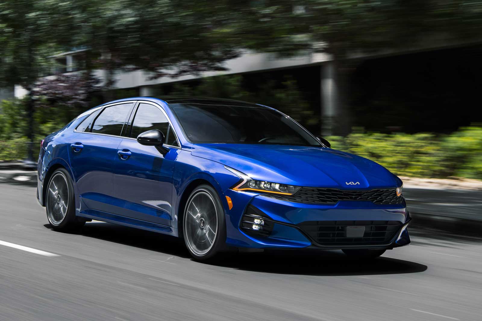 La gamme Kia K5 consiste des variantes LX, EX et GT-Line équipées d’un quatre cylindres turbo de 1,6 litre, produisant 180 chevaux, ainsi que d’un rouage intégral. On retrouve aussi la K5 GT à traction munie d’un quatre cylindres turbo de 2,5 litres, bon pour 290 chevaux. Le seul changement cette année, c’est l’ajout de glaces acoustiques dans les portes avant.