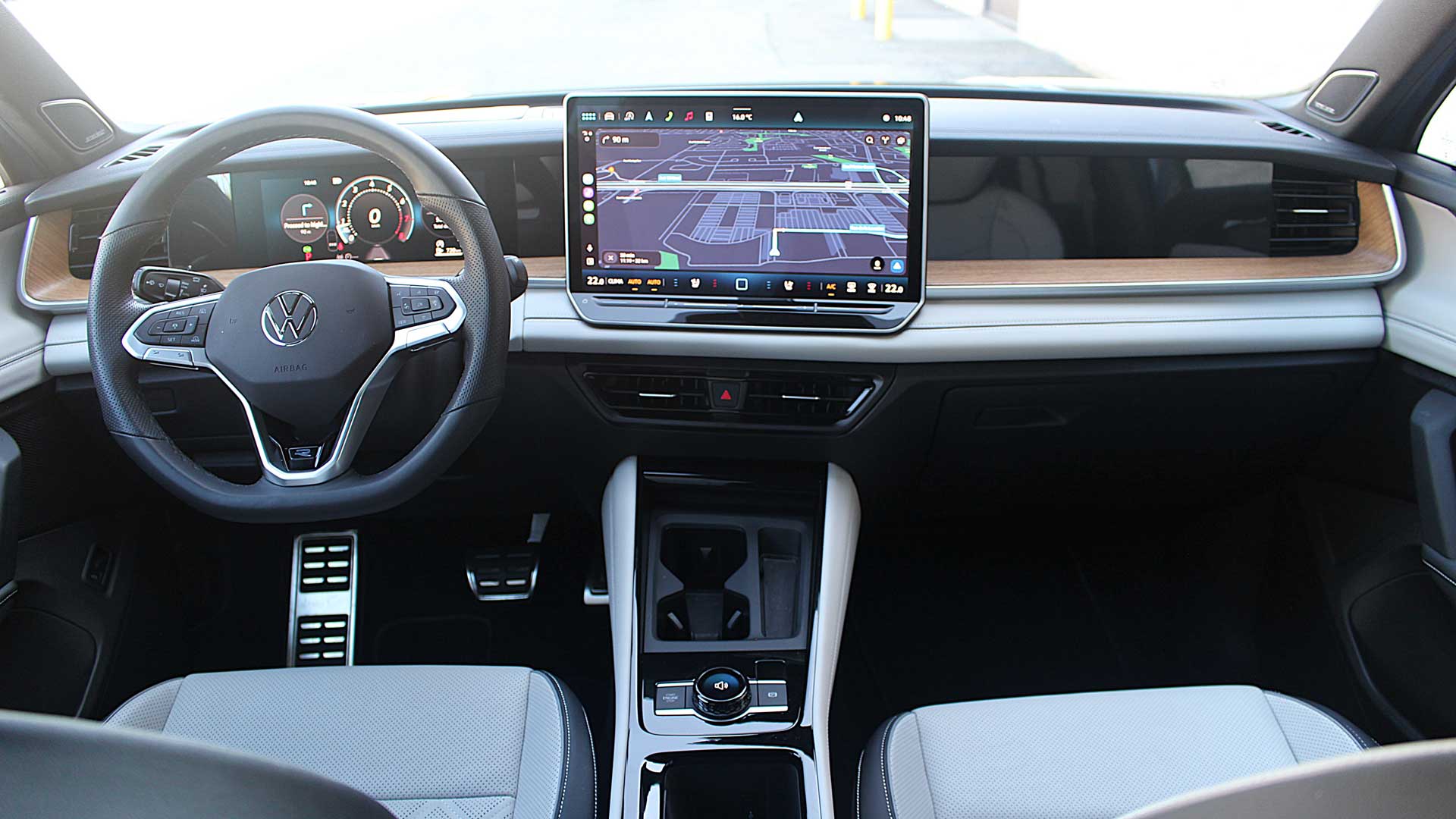 Le Tiguan Highline R-Line profite également d’un éclairage extérieur périphérique avec éclairage au sol, un pare-brise chauffant, de rétroviseurs à rabattage électrique, d’une assistance au stationnement, d’un hayon électrique à mains libres, d’un climatiseur automatique à trois zones, de cuir à texture matelassé, d’un siège du passager avant à 12 réglages électriques, de boiseries à pores ouverts, de sièges avant ventilés avec fonction de massage, de sièges arrière chauffants, d’un affichage à tête haute, d’un système de caméras à vue périphérique, d’une chaîne Harman/Kardon à 12 haut-parleurs, d’un système de navigation, d’un écran tactile de 15 pouces et d’un éclairage d’ambiance à 30 couleurs.