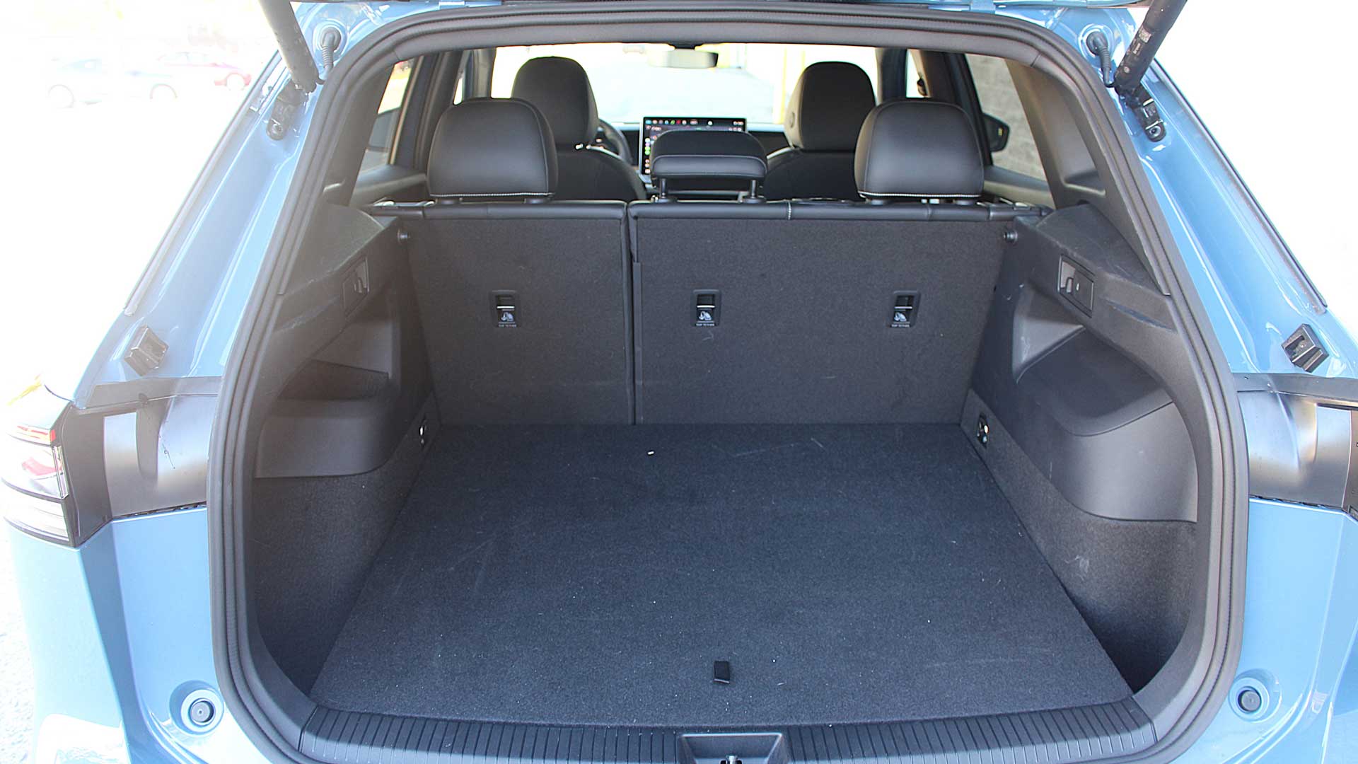La troisième rangée partie, on s’attendrait à une amélioration en espace de chargement. Eh bien non. Avec les dossiers arrière relevés, le volume a chuté de 934 à 750 litres par rapport à l’ancienne génération, et avec les dossiers rabattus, le volume totalise maintenant 1 668 litres contre 2 081 pour l’ancien Tiguan.