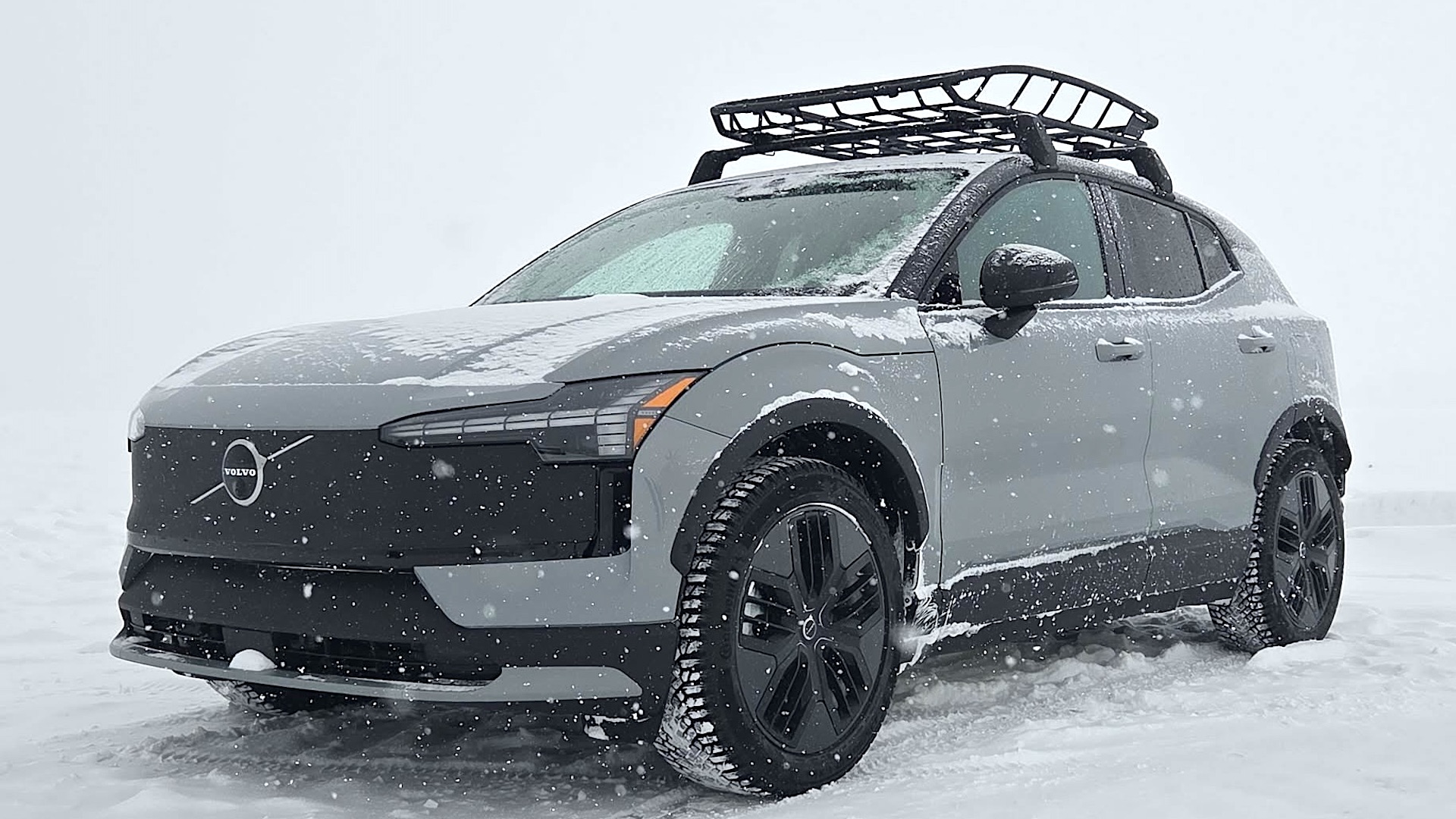 Voilà pour la mise en contexte. L’EX30 Cross Country, nous avons eu l’occasion de l’essayer en Suède l’année dernière. Il n’a pas changé. Pour tout savoir sur lui, on vous invite à consulter l’essai que nous avions réalisé à ce moment-là. Dans le présent billet, nous allons nous concentrer sur ses compétences une fois le revêtement en bitume troqué pour de la neige et de la glace.